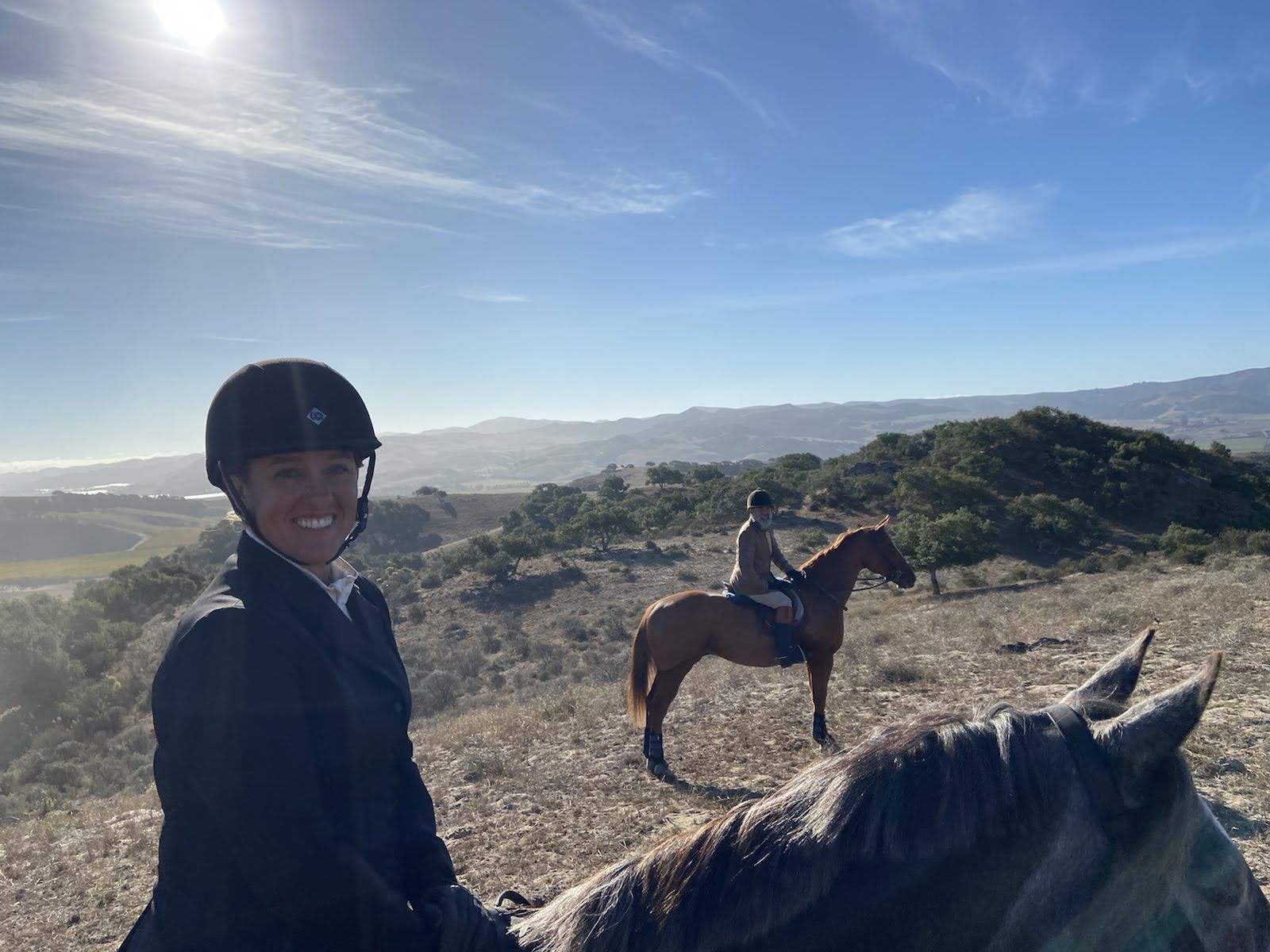 The next phase of the day was wine tasting at Kalyra Winery in Santa Ynez. The winery is owned by a Pony Club family and clients of Allyson’s and looks exactly like what you would envision when you think of a wine country vineyard- fields of grapevines in a bucolic valley with the foothills and mountains in the background. (Fun fact: the winery made an appearance in the 2004 movie Sideways, a rom-com that took place in Santa Barbara wine country.) We each tasted four wines (all were delicious so it’s hard to pick a favorite) while enjoying looking out over the vineyards and fields.