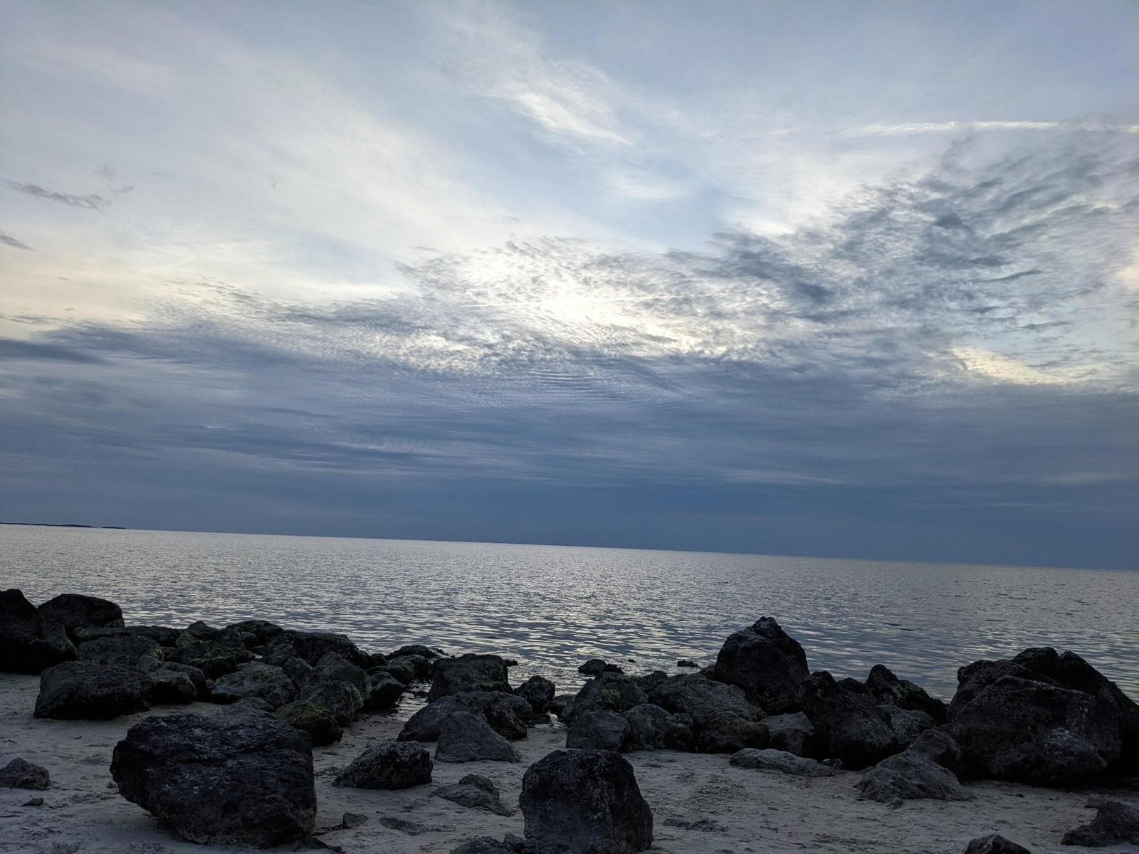We explored a bit longer and then made our way back to the launch, paddling by a handful of manatees on the way back in. We packed up and then decided to watch a Gulf sunset nearby so headed to Fort Island. Despite it being cloudy, we enjoyed the approaching dusk as we sat on the ubiquitous loveseat eating popcorn and overlooking a bay on the Gulf.