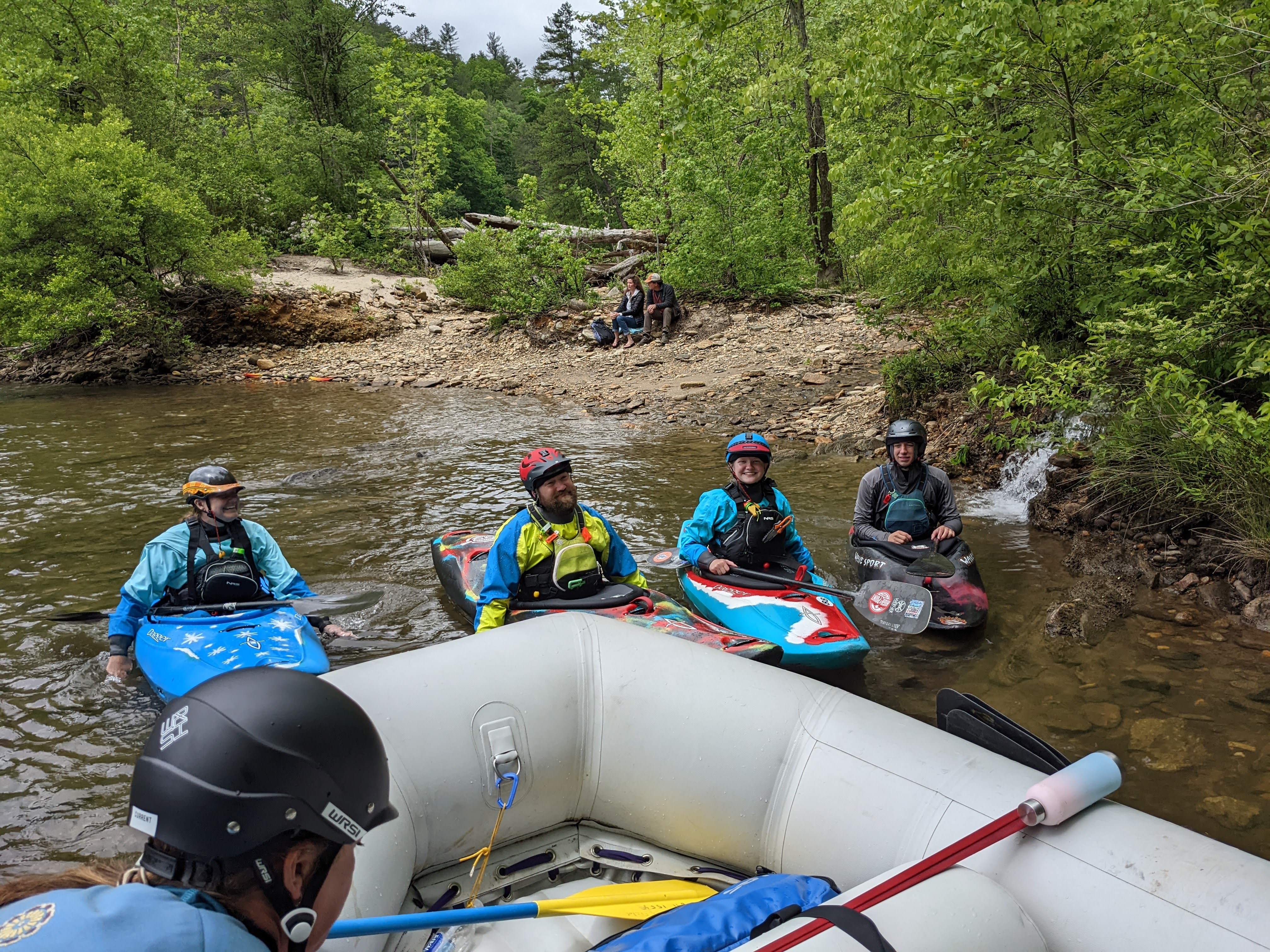 Saturday morning we got up, made a quick camp breakfast, and gathered with the group to talk about possible trips to take that day. Scott had been asked to bring his 16 foot river raft so that a raft trip could happen because the raft owned by the club had a hole in it. I would be on the raft, along with a few other FPC members, and we would be captained by a FPC member named Clayton. Scott and some other kayakers would be our “safety boaters” and would boat alongside us as we navigated section 3.5.