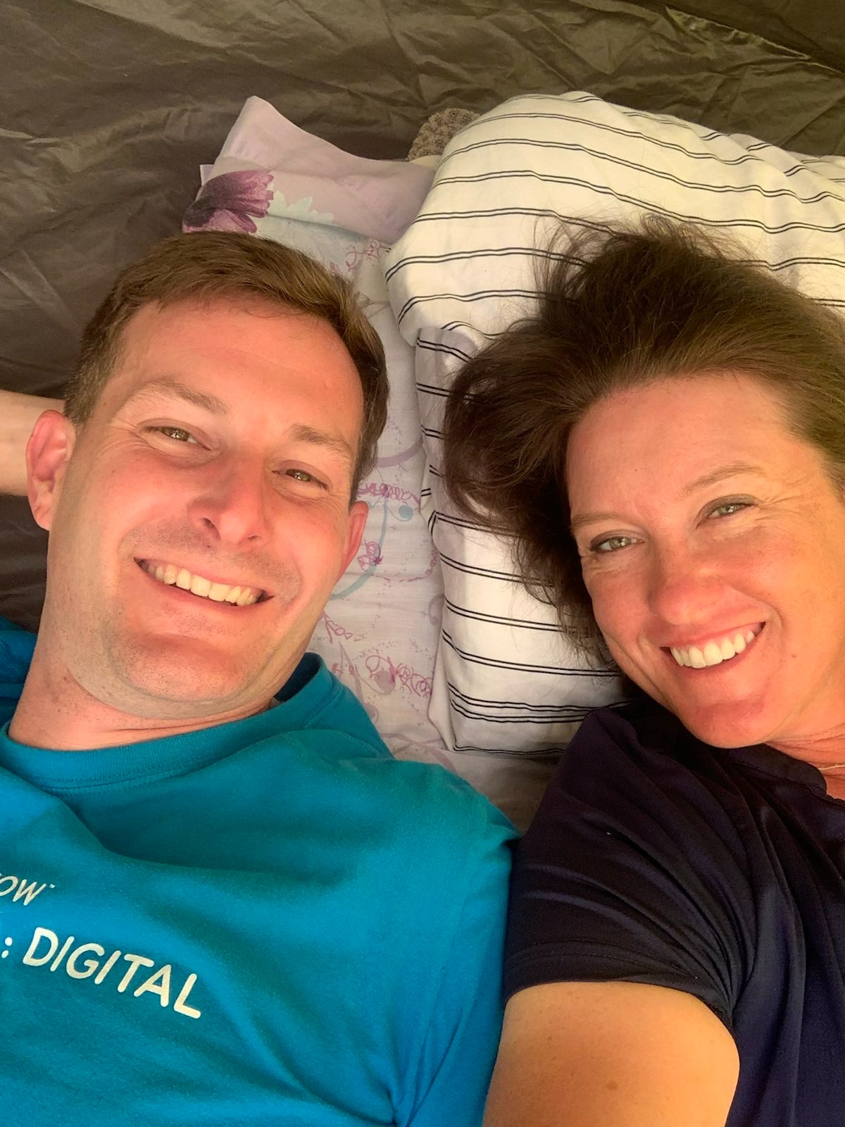 Trailer in tow, we left Easley Friday morning under ominous threatening skies and during the drive there I was nervously watching my weather app and radar- the forecast was calling for severe storms and possibly tornados. Not exactly ideal camping conditions… (Fun fact, even though Scott has camped probably hundreds of times more than me, about a quarter of my tent camping experiences have involved nearby tornados.) We arrived at the campgrounds and decided to hang out and socialize for a bit and put off setting up camp because of the weather threat.
