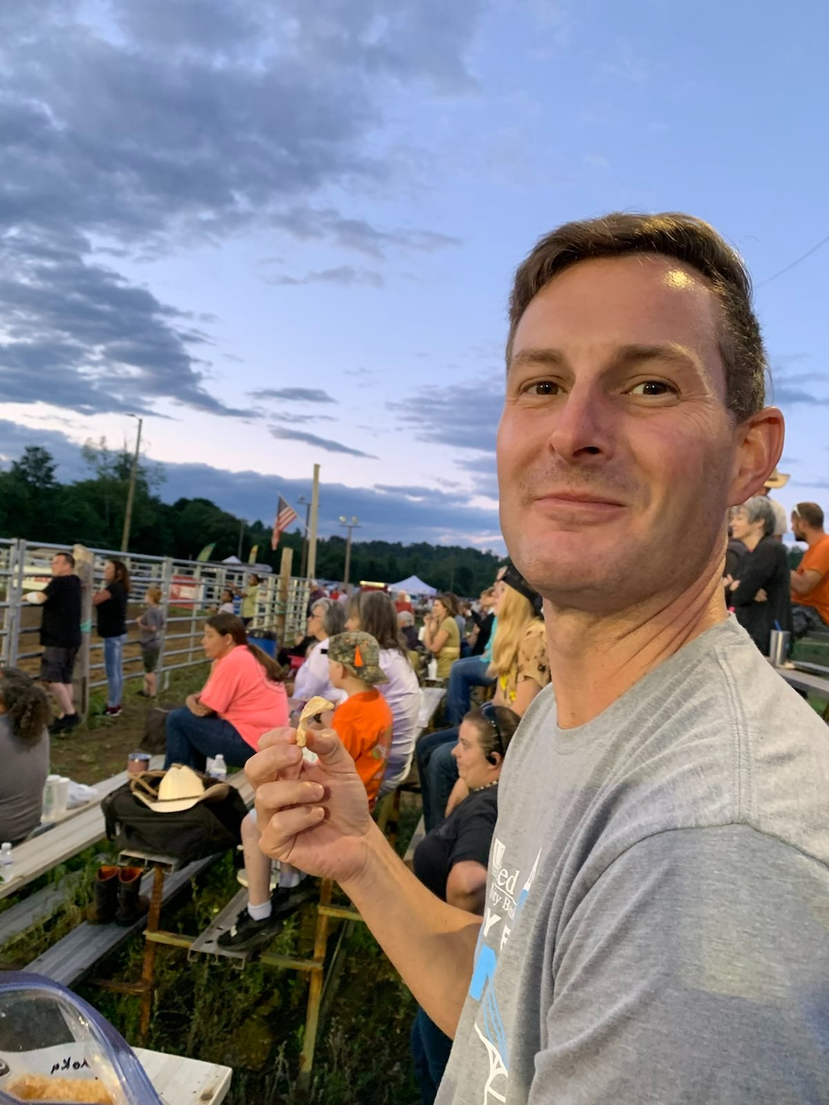 Friends that are part of the paddling club invited us to the Marietta Rodeo on the last weekend of May. Some rodeo events are entertaining to both man and beast and I could get on board supporting those and cheering along with and enjoying them. Some rodeo events are entertaining for man but the beasts that are forced to participate aren’t having as much fun and I made sure to let my opinion be known to all that were fortunate enough to be seated around me (sorry y’all). A PETA member I am not, and I can appreciate the functionality of some of the skills that the rodeo tests but some of the events seem downright cruel and quite unpleasant for the stock participating: chute doggin’, mutton busting, and an event in which a rabid horde of enthusiastic children descend upon an unsuspecting goat in an attempt to remove a ribbon tied to its tail, all come to mind. I forgot how much I don’t like rodeos until that night and am still apologizing to Scott and the friends we went with but I can’t help feeling dogmatic and highly principled about some things. The people watching and the local color of rodeo night in Marietta made up for it though. And Scott got to eat some pork rinds, so there was that…