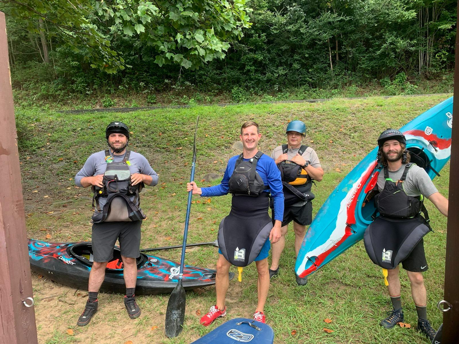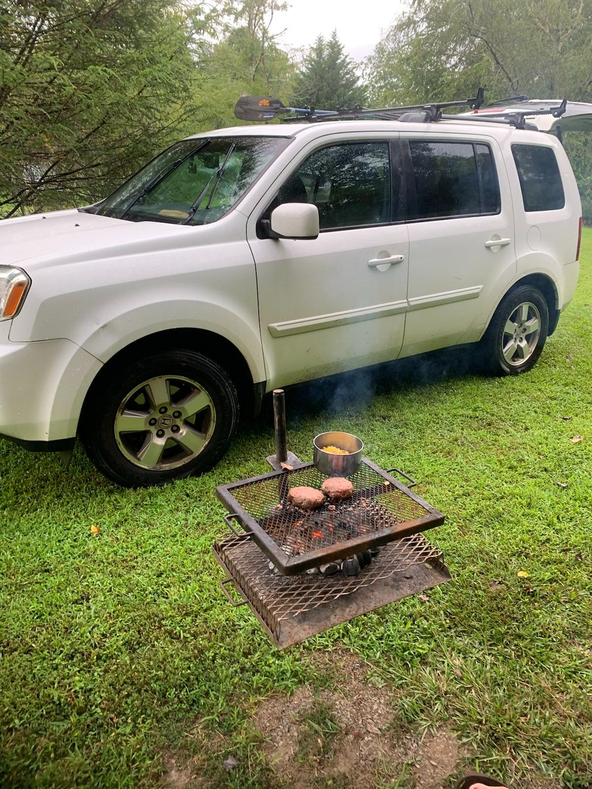We took a trip to the Hiawassee on Sunday. This time I was in a kayak! The Hiawassee is a wide and shallow river and has lots of shoals. The section we kayaked was mild and only had Class I-III rapids but the sound that the shoals create is rather impressive. That noise combined with my lack of familiarity with the river caused me to have a minor meltdown and panic attack about ⅓ of the way down the river. I am appreciative of all the fellow paddlers on the trip that offered me support and kind words while I was scared and stressed. Despite my freak-out, I actually had a successful PFD but was quite thankful to be back on dry land and back at camp later that evening! Dinner was hamburgers cooked on the mountain-man grill. Scott’s camp dinners are to die for and this one didn’t disappoint.