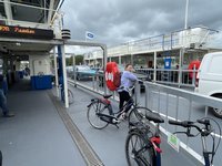 The next morning we were on a mission to rent bikes to trek out of the city to the village of Zaandam to see windmills- a very Dutch experience for sure! I was a nervous wreck peddling in Amsterdam but once we got out into the smaller suburbs and quaint villages and then into the parks I calmed down and was able to enjoy the sights. The wind was fierce (not quite sure why I was surprised by this since it is advantageous to build a windmill in an area that experiences wind) which made the ride feel hard but the sights were well worth it once we got there. We had a quick picnic lunch and walked around the windmills for a bit before venturing back. This time we took a more direct route and it was easier since the wind was at our backs. We had to take a free ferry both going and coming and it was entertaining to see the bikes outnumber the cars nearly 3:1. All told, our bike ride was about 25 miles and was definitely the longest bike ride I have ever done and my rear-end would remind me of that for the next few days, although it was a fantastic way to spend a day.