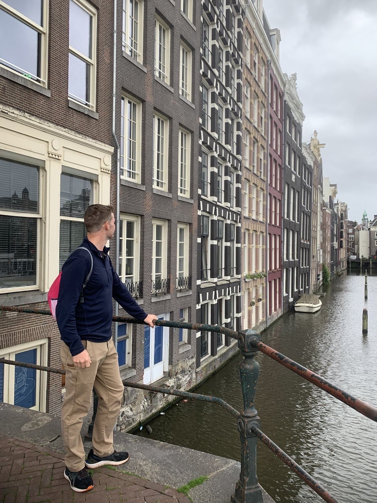 We were lucky enough to have the middle row of the widebody Airbus 330 to ourselves on the flight to Amsterdam which was a happy little perk and we arrived in The Netherlands about 9 hours after leaving Atlanta, not very well rested but at least well fed. International flights are nice because they still serve meals which is a welcome diversion and helps break up the flight. Prior to leaving for our trip someone had warned me about Amsterdam’s famously long runway (~3 miles long) and they weren’t kidding- it seems that we taxied for almost half an hour before finally reaching the airport.