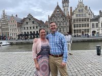 The nearly 850 year old Gravensteen Castle was next and I don’t know that I have ever seen Scott quite as excited as when he was touring the castle. As an aside, the in-person line for tickets was a mile long. Fortunately, Scott purchased cellular data service that morning, allowing us to purchase tickets online. The eSIM was about $25 and enabled us to have data access throughout the EU - a godsend from the navigation perspective. Unfortunately, it cut down significantly on the prospects of ending up at another beach town by mistake. The tour included a very well done, highly engaging and slightly cheeky audio tour which informed us of the history of the medieval castle and highlighted interesting features. It was when we were in the dungeon portion of the castle tour that Scott turned to me and with a straight face said he thinks he could have been an executioner. I’m sorry, what? Seeing the horrified look on my face he clarified it by explaining that he didn’t think that he could be the one to sentence someone to death but if he had been hired to be the guillotine guy then he thinks he could do his job without any tears or sniffles. So that happened. We thoroughly enjoyed the tour and must have taken one thousand pictures- my favorite one is of a sign asking visitors to kindly refrain from using the medieval latrine that emptied directly down into the Lys river below. (Side note: Scott likes to give things nicknames and his pet name for the Gravensteen Castle was Ass-grabin-steen and he used it every chance he could. I think he is actually a middle school aged boy and not an adult.)