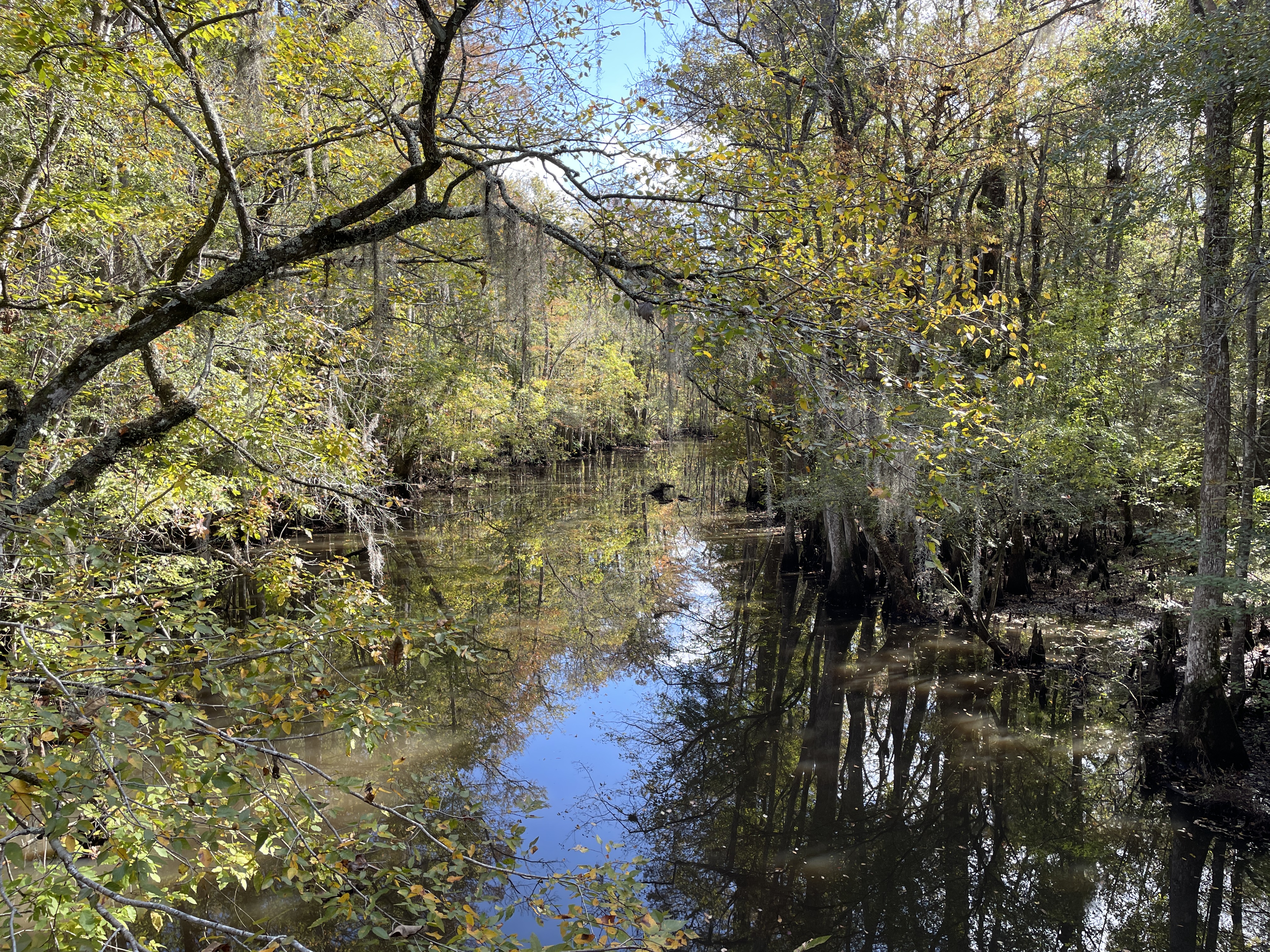 On the way down to Charleston and Becky’s we stopped to visit Beidler Forest, an 18,000 acre nature preserve owned by the Audubon Society. I had always wanted to see it but had never gotten the chance. We spent about 2 hours walking along the boardwalk that passes over top of the old-growth cypress-tupelo swamp forest and enjoyed learning about this unique ecosystem and looking for the birds and animals that inhabit it. We had been lent binoculars at the visitor’s center and were thankful to have them because it let us zoom in on a sun basking alligator in a pond. Immediately after we saw the alligator a barred owl landed just a few feet away from us, its lunch, some sort of rodent, in its talons. It was seemingly unphased by us and chowed down on its meal right next to us before flying off to a nearby tree to rest and digest. Its wingspan was impressive!