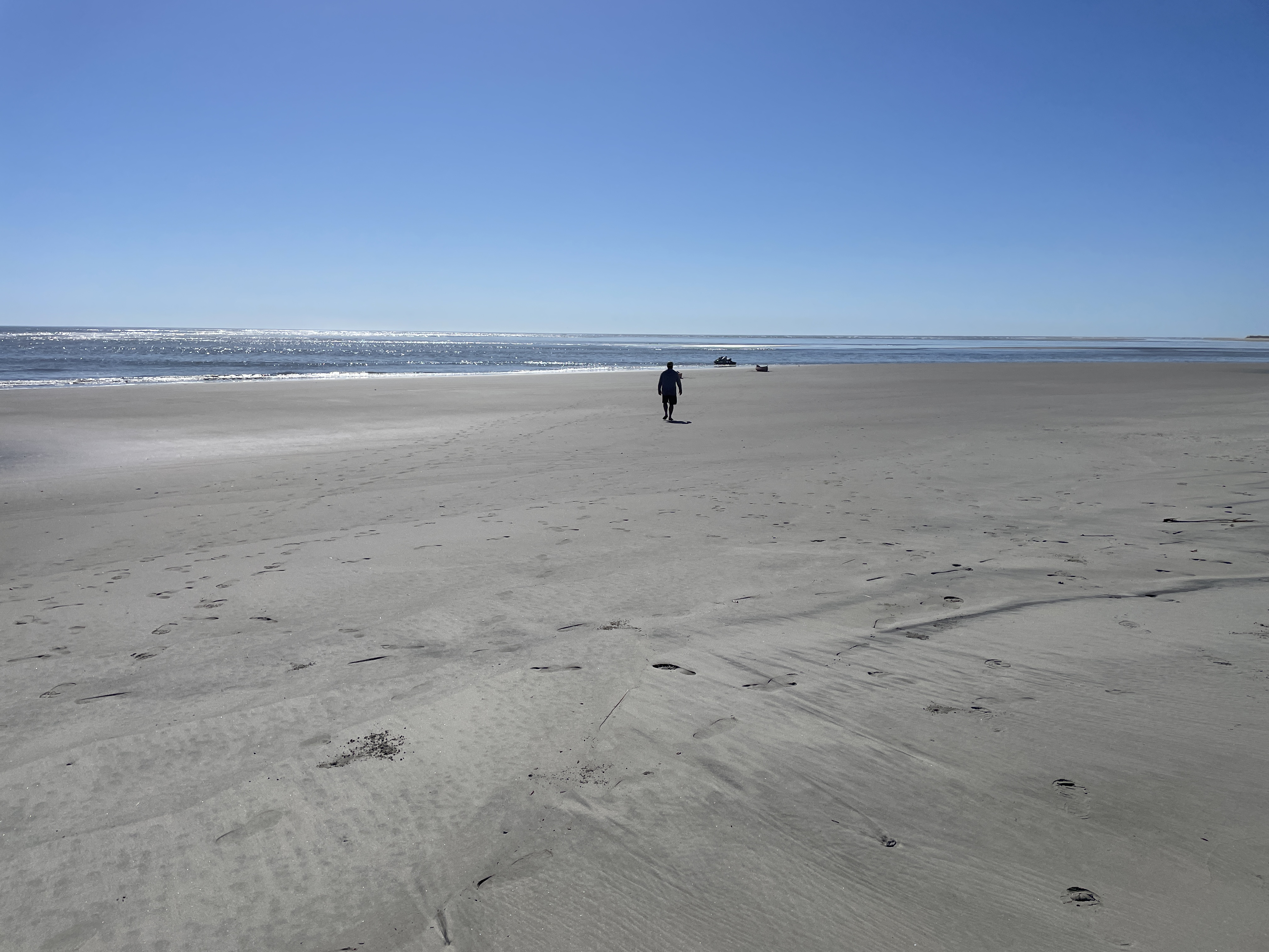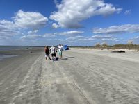 Once we got close to the island the breaking waves of the Atlantic ocean greeted us. Joey was able to keep paddling through the breakers in his sea kayak but Scott and I opted to get out of our canoe and “leash walk” our canoe along the shore until we were closer to the area where we would be camping to avoid the risk of getting flipped and swamped. We made it to the designated camping part of the island and pulled our boats up onto the beach (they were heavier than you would think considering how little we were able to bring). It was time to explore and set up camp!