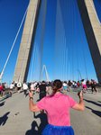 With just a few minutes to spare, we slid into the front of our corral and listened to the announcer and DJ hype up the crowd to see off the competitive wave of elite runners who would be finished with the race before we even reached the summit of the Arthur Ravenel bridge (the winner this year was a 22 year old Ethiopian runner named Ali Abdilamana who ran a smoking 27:53, and the top female was 25 year old Kenyan runner Sarah Naibei with a time of 31:41. I should note that her 10k time is my 5k PR time…). It took us about 13 minutes to work our way up to the start line because there were that many people running and the majority of them were behind us!