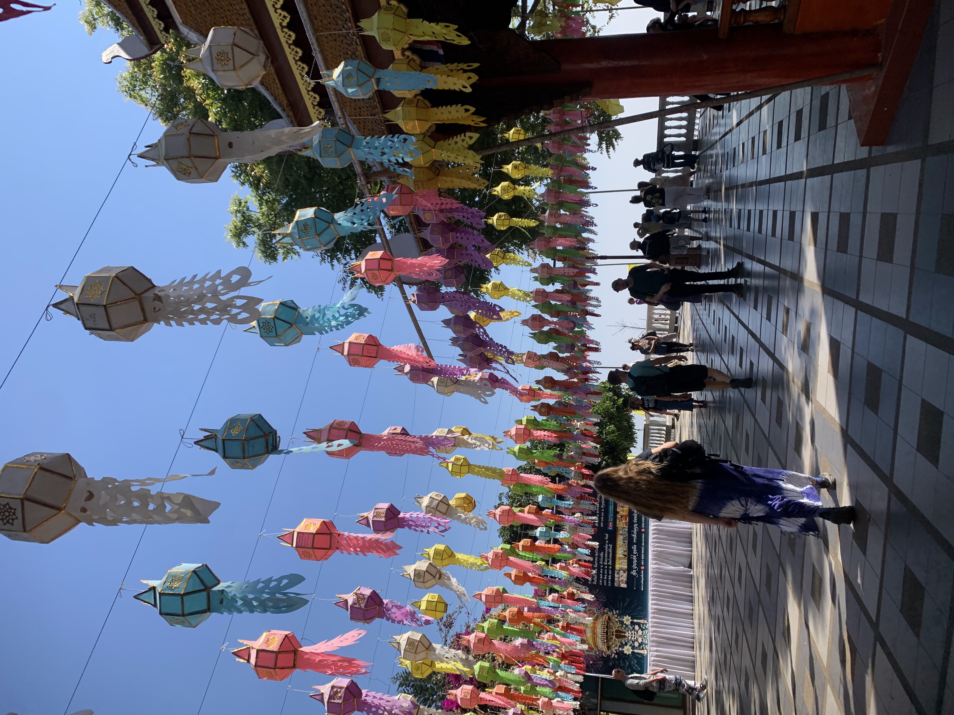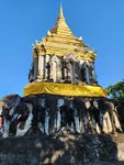 Wat Chedi Luang: This one might be my favorite because it had an asymmetry that gave it character- the top of the tall structure was missing, lost to an earthquake in 1545. It also had stone elephants around the temple. It was impressive because of its height and the grounds were decorated with elaborate colorful fabric lanterns.