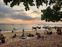 We hung out on the beach and in our hammocks long enough to catch the sunset over the bay and then decided to go in search of some dinner. Scott had read about a food market near the beach so we went in search of it. As we walked through the beachtown of Ao Nang we quickly sensed that we were in the Thai equivalent of Myrtle Beach, just with better scenery, with the iconic limestone karsts as a charmingly redeeming backdrop and antidote to the seediness of the town. I might have been hangry by this point so it felt like we walked for miles, but we finally found the food market and picked a stall to order from. The food was good and refueled us for the walk back up the hill to our hotel.