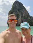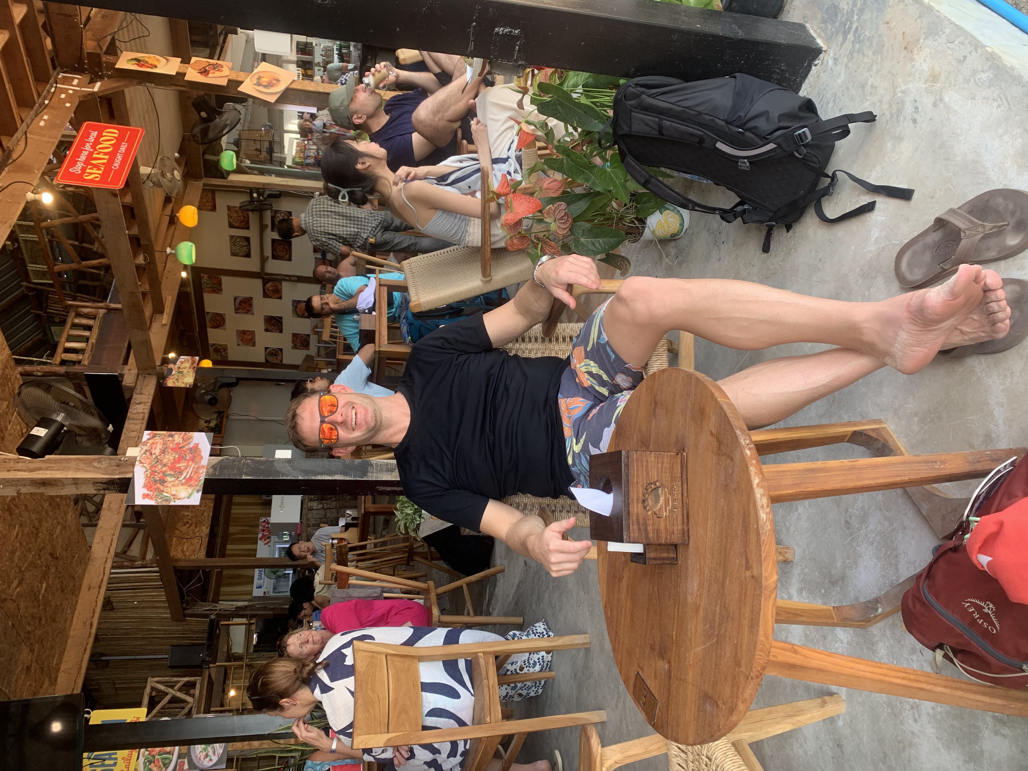 The beach was absolutely packed which made for interesting people watching and the longtail boat traffic was wild. There was a steady stream of them constantly coming and going, and while we had learned from YouTube travel videos that they were prolific in their numbers and in their racket, we didn’t get a true sense of it until we saw it in person. They would pull up onto the beach and throw their anchors at the water’s edge, deposit some passengers who then waded to shore, wait a few minutes, then load their next haul of passengers and take off across the horizon to some other place- most likely Railay Beach which was close by.
