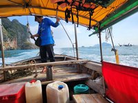 We could hear the beach before we could see, or rather, we could hear the infamous longtail boats whose repurposed automotive engine motors created an obnoxious din as the boats taxied tourists from one island to another. We hung the hammocks in trees near where the beachfront met the road that led to the resorts and we each took turns1 taking a dip in the Andaman Sea.