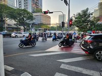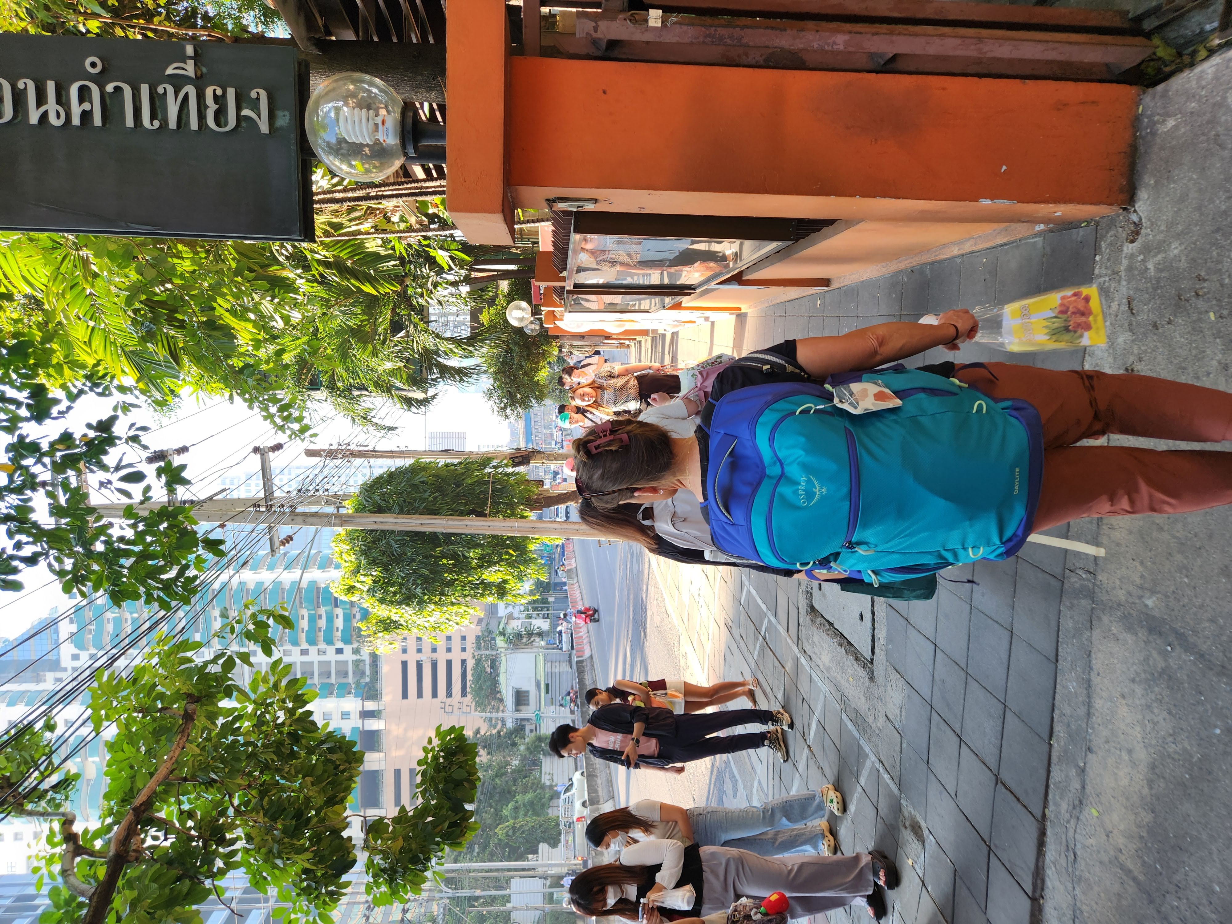 Bellies full we donned our backpacks and headed towards Benchakitti Park to kill time before we could check into our hotel. It is a beautiful green space amidst the urban madness of Bangkok. Along the way we passed the infamous Soi Cowboy. Scott had hoped to hang our hammocks in the park so we could take a much needed siesta but he was quickly shot down (verbally, not literally) by the park guard who barked a stern “NO!” in his direction as he unfurled the hammock and started stringing it up between two trees. Hammocking denied, we opted to just lay in a shady spot on the grass and rest.