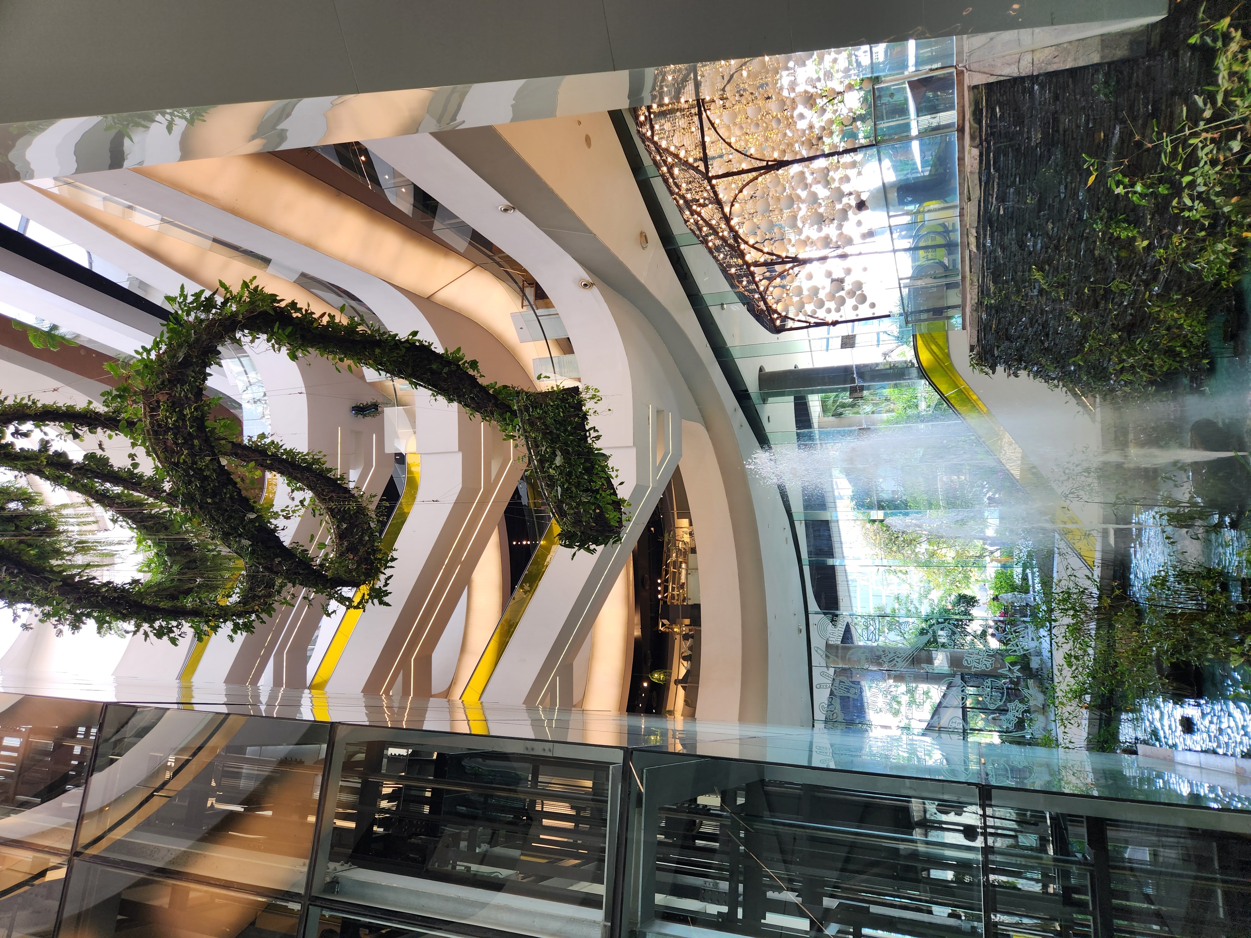 Bodies now beat into submission, we staggered out of the building in search of some lunch. We ended up at a large mall (one of thousands it seemed) near our hotel, called the Em Quartier. The malls in Bangkok were just unbelievable- several stories tall, chocked full of luxury goods stores (Hermes, Fendi, Dior, Louis Vuitton, etc.) and extravagantly decorated with waterfalls and live plants. We had heard that the food court here was worth checking out so we scouted out our options. We settled on a pizza place and split one while people-watching and admiring the ostentatious surroundings.