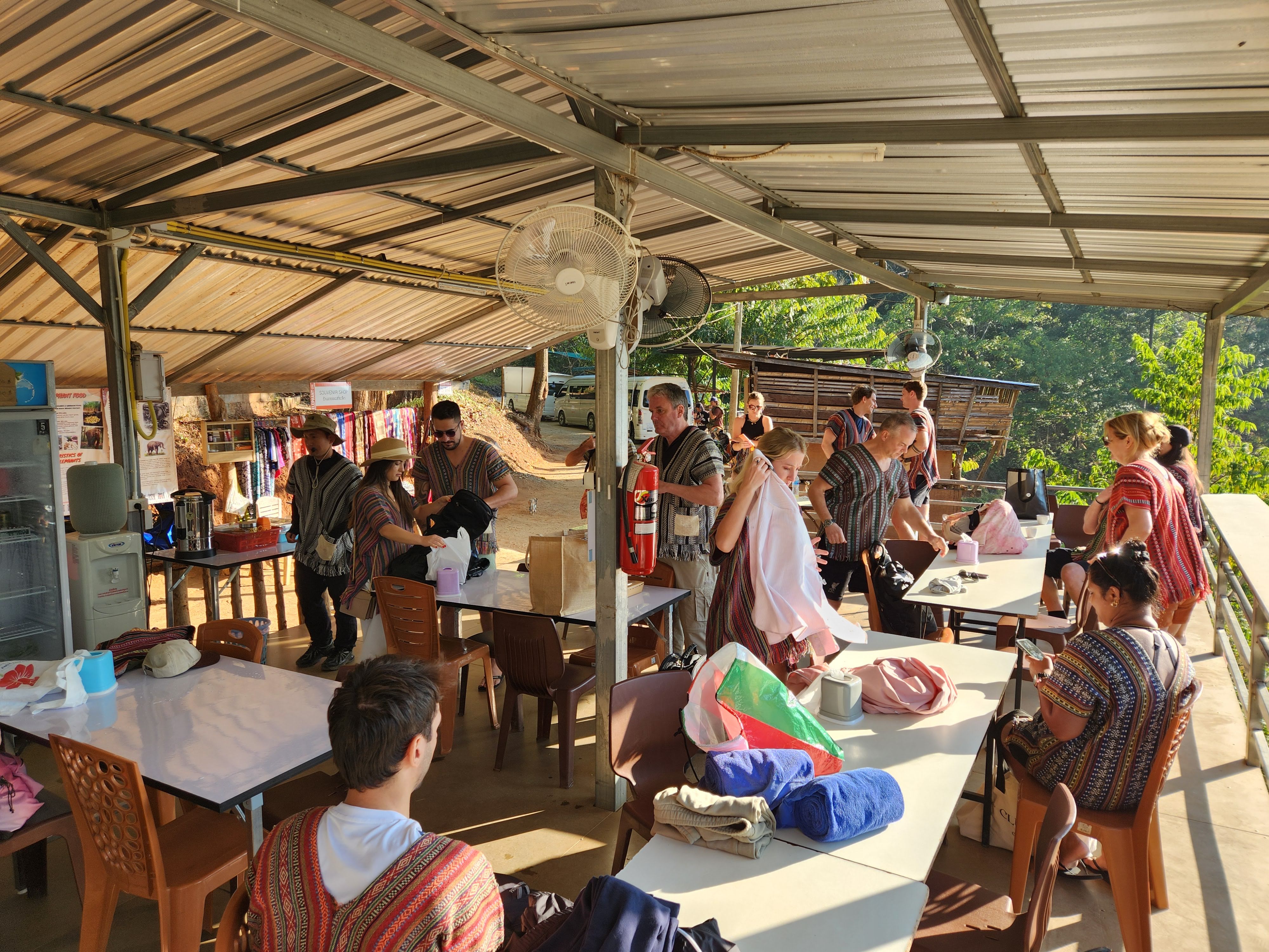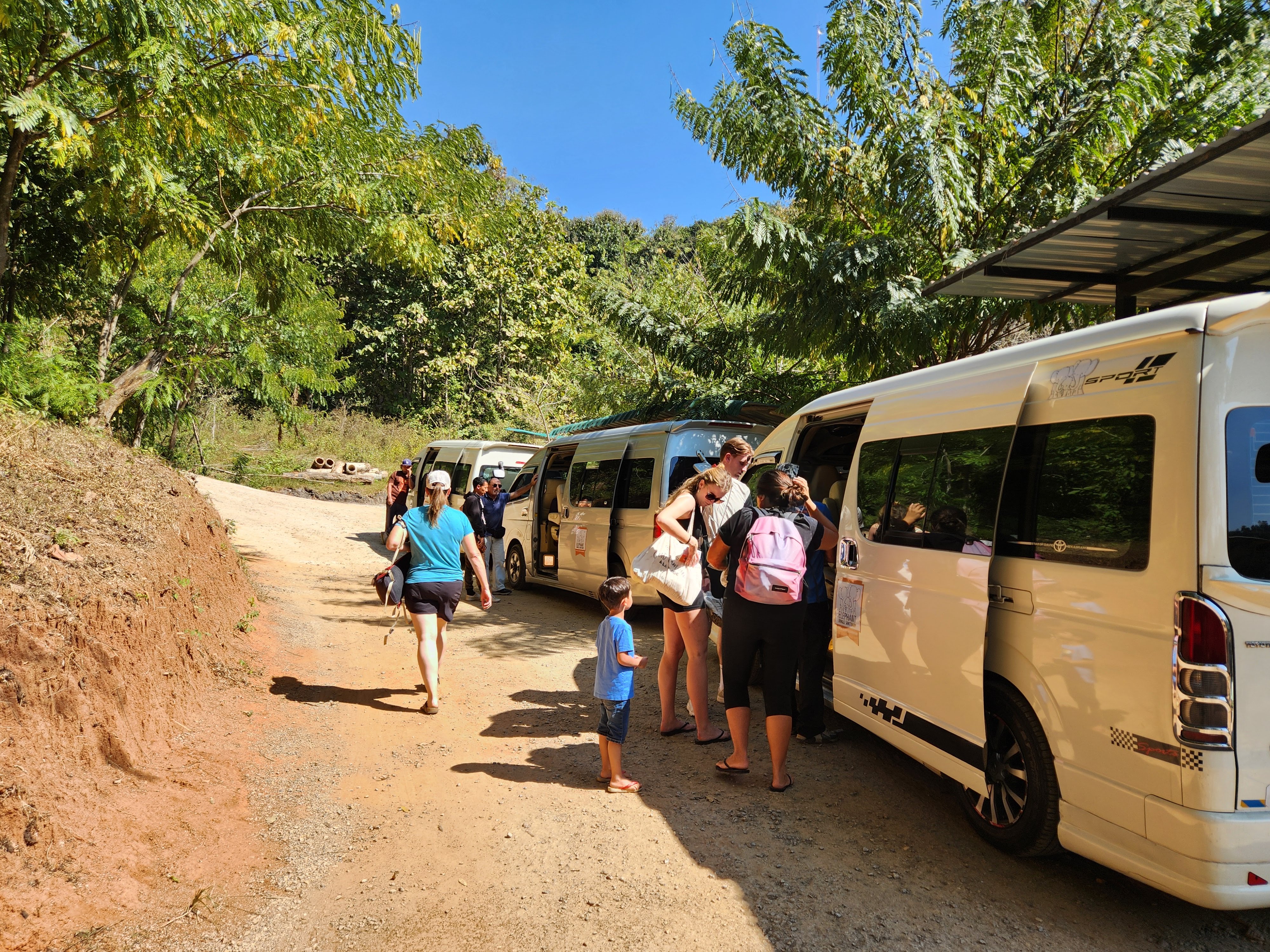Today was Elephant Jungle Sanctuary day! A minibus from the sanctuary picked us up bright and early from our hotel and we piled into it, introducing ourselves as we climbed over people and made our way to the empty seats in the back. There were people from several different countries1 already on the bus and we were all headed about an hour and a half southwest of Chiang Mai to the sanctuary. The bus stopped about halfway along the route for everyone to have a 7-11 and toilet break before continuing on.