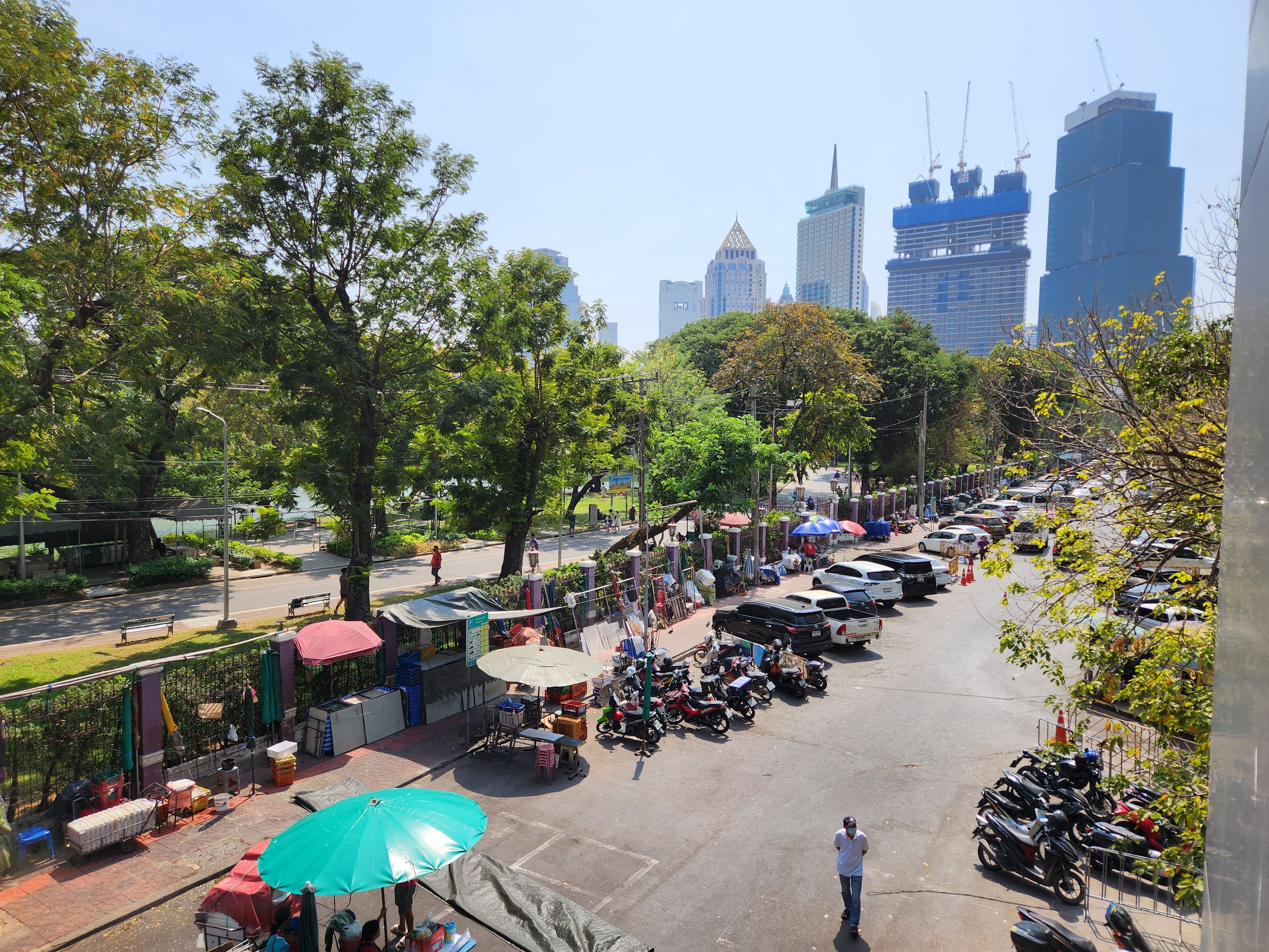 He got out of the tub rejuvenated and we decided to go to Lumphini Park for a picnic and to hopefully be able to see some of the “lumphini lizards” that it is home to. Lumphini lizards are actually Asian water monitors and are close relatives of the Komodo dragon. We had seen them referenced in a lot of the YouTube videos about Bangkok that we had watched during our trip planning and were eager to see them in person; the idea of alligator sized reptiles roaming casually around a city park piqued our interest.