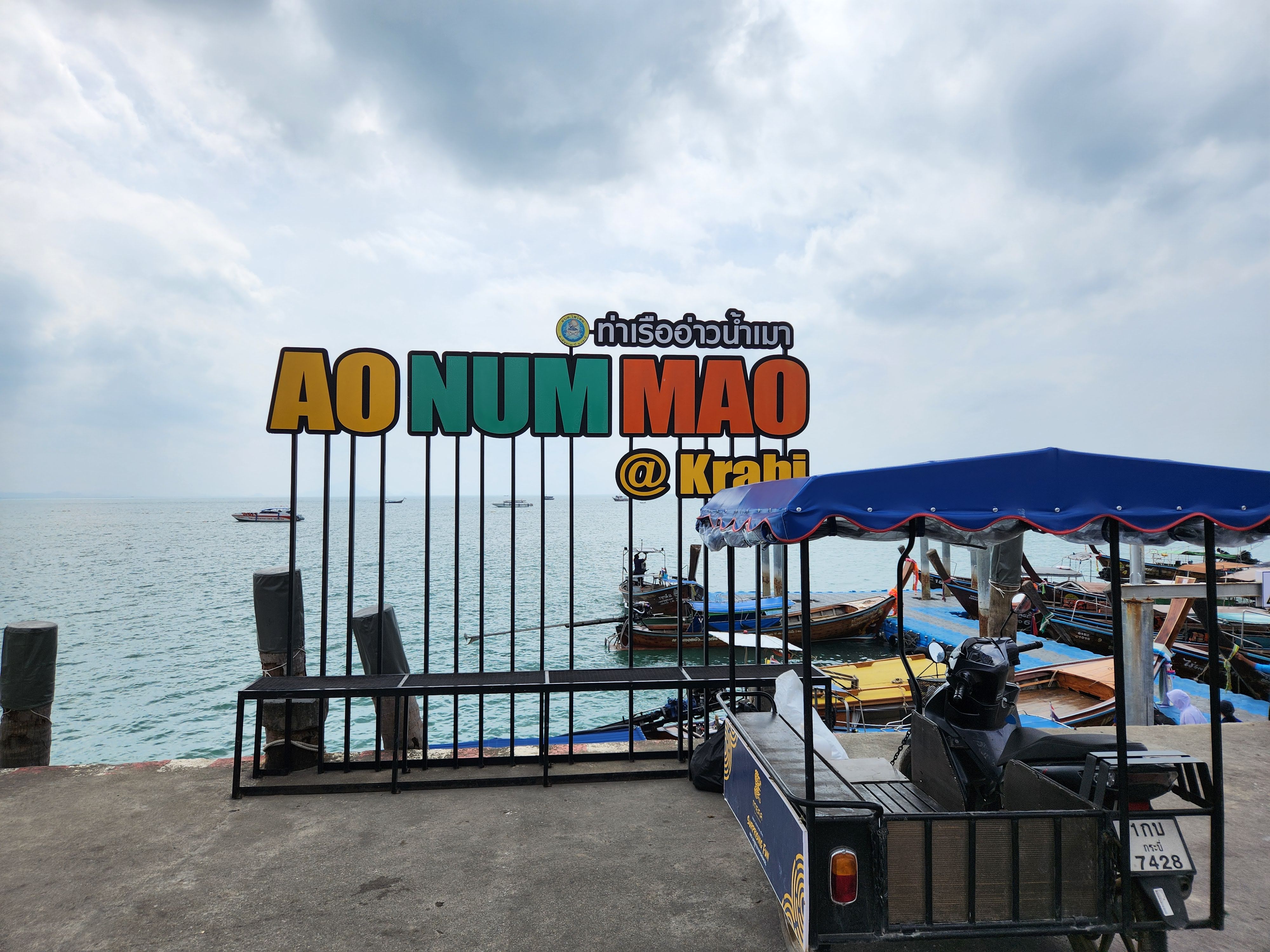 The red truck taxi-esque vehicle finally showed up to pick us up, after being delayed just long enough to cause me anxiety that we had somehow been forgotten. We piled into the back of the truck and snagged the last two remaining seats on the wooden benches in the truck bed. It was about a 20 minute ride to the Ao Nam Mao Pier and thankfully, this was one of the less wild taxi rides we had taken yet, and our motley crew of travellers from around the world1 arrived all in one piece, ready for a day on the luxury catamaran.
