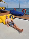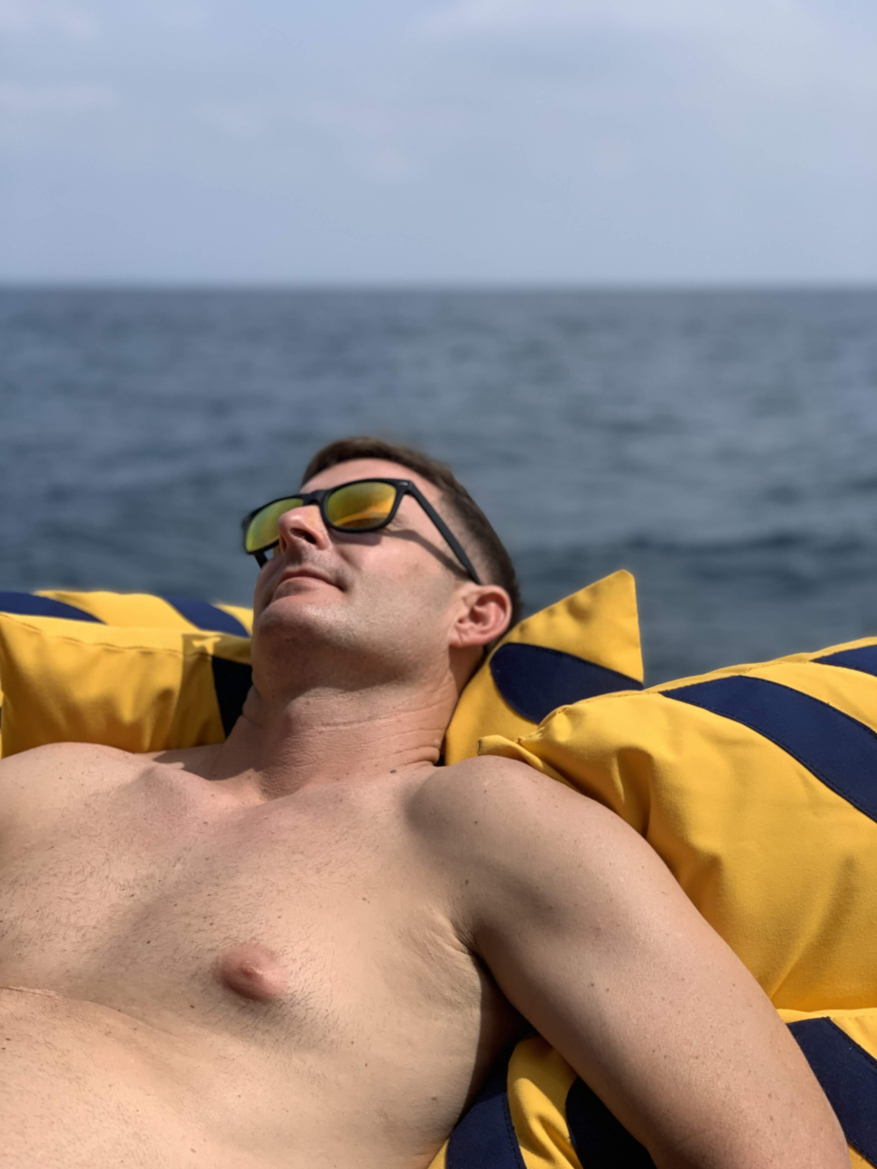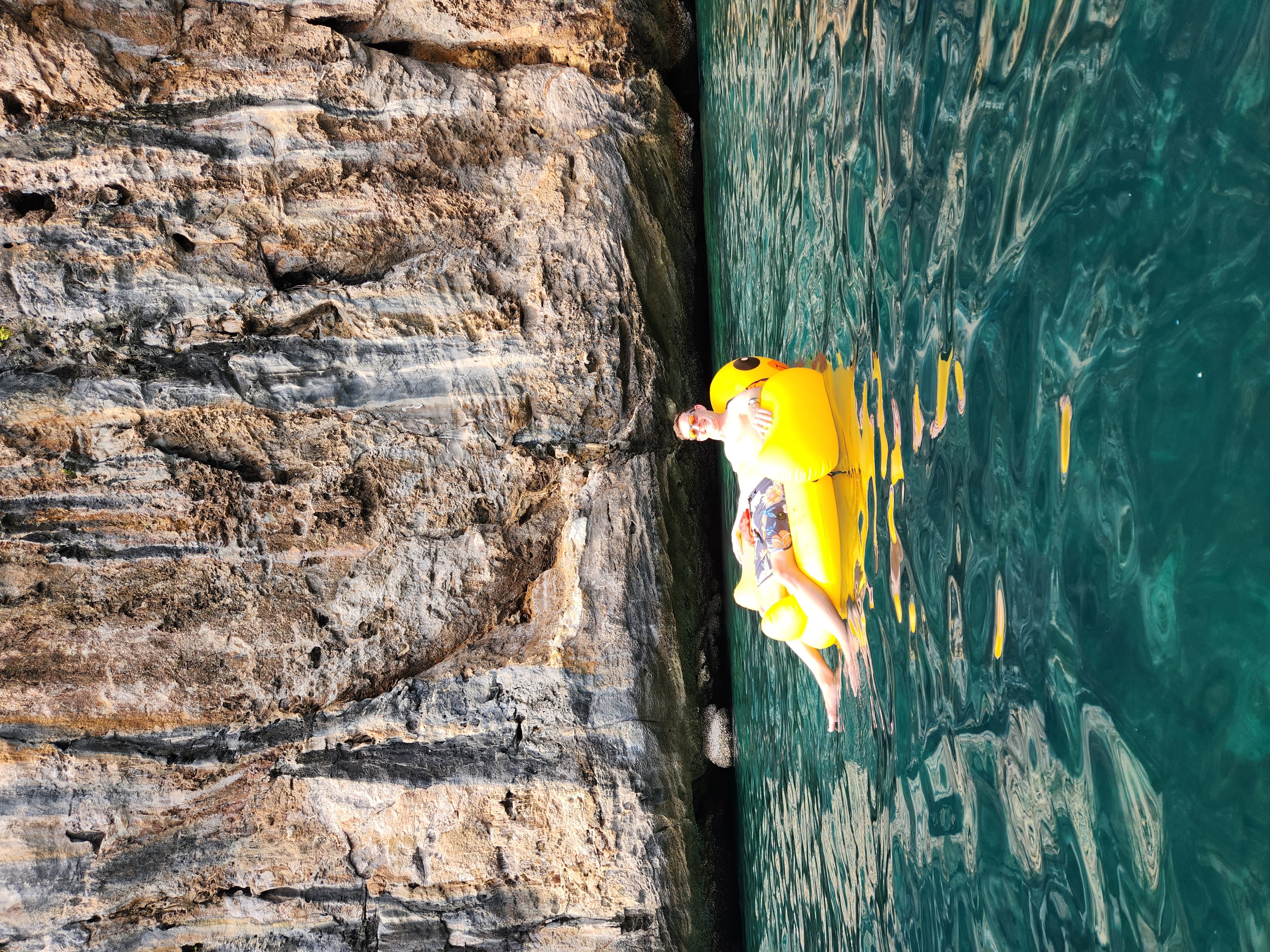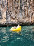 Even though we weren’t able to splash around in the same area that the movie was filmed, we were still able to appreciate its beauty from afar. We both attempted stand up paddleboards (this was my first time!) and took them to an accessible cove and beach nearby. I mostly paddled it on my knees, but with a little assistance from Scott was able to successfully stand up and paddled almost all the way back to the boat before my legs got too shaky to remain stable and I went splashing face first into the water. This is so much harder than I had imagined and I am in awe of the people that paddle them down whitewater! We spent the rest of the time floating around on huge rubber duckys before heading back in. (We appreciated the fresh water shower that was on the back of the catamaran and took advantage of it each time we reboarded the boat.)