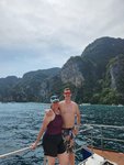 After some confusion about having to pay the National Park fees (we thought our tickets from the previous day when we had visited the caves were good for this park entry fee as well, but it turns out they were not) we were set and headed to the pier to get loaded onto a longtail boat to be tendered to the catamaran. Along the way we were chatting with the only other American couple on the tour who ended up being from Charleston, SC of all places!