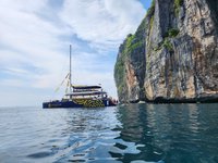 Postscript: We had originally considered doing a speedboat tour of the Phi Phi Islands and we are so thankful that we chose the catamaran, even though it was a bit more expensive. It was well worth it to have the amenities that the catamaran provided as the speedboat appeared to be much rougher and have zero creature comforts and more closely resembled a bus than a cruise. We paid $80/each plus a few drinks and this included the National Park entrance fee.