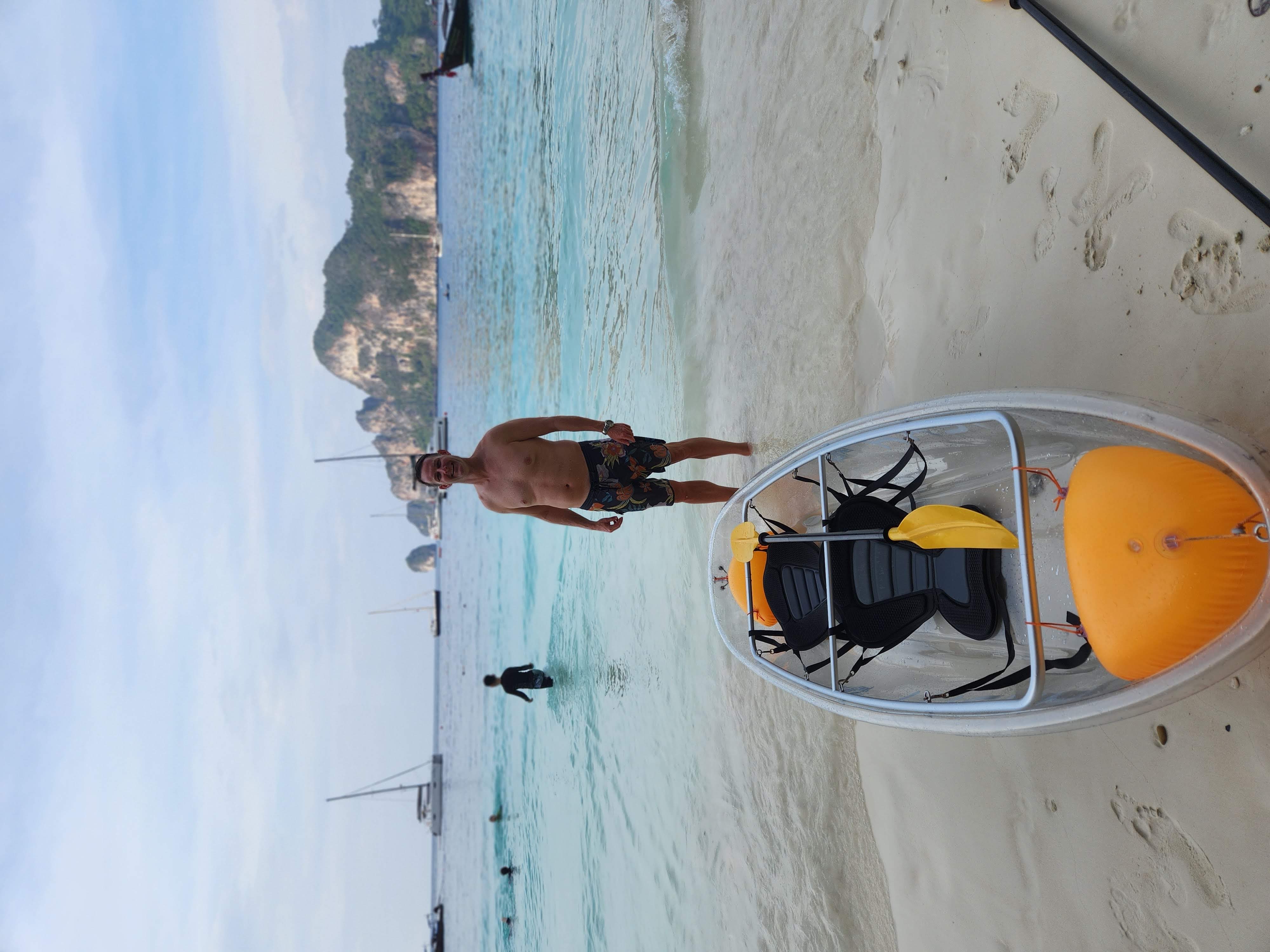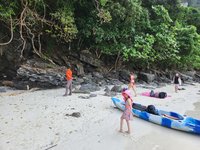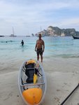 We got our phones and then got into one of the clear kayaks to paddle back to the island to get pictures of the monkeys. This time when we reached the island there was a park ranger with a slingshot in his hand to help ward off the macaques. His presence had caused the monkeys to retreat up into the jungle- obviously they knew what the slingshot meant. Unfortunately we didn’t get any good pictures. We waited for a bit to see if they would venture back down but eventually had to paddle back since our boat was soon departing.