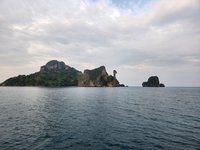 They served us an afternoon tea as we sailed on to Chicken Island, passing Bamboo Island on the way. They timed it so that we would be able to watch the sunset near Chicken Island. Their timing was perfect and we were treated to one of the best sunsets of our trip as the sun slipped dramatically down the horizon right over top of the Phi Phi Islands and cast a soft orange glow over the karsts and eventually seemed to lower itself gently into the Andaman Sea.