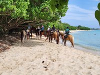 All week he had been complaining about us not being able to ride on the beach. I had been the “bad cop” as usual and explained that just because there were horses at the STXPC, it didn’t mean that they were available or appropriate to use to ride on the beach. I tried to explain all the ways this could go wrong, the least of which is the fact that it is actually illegal to ride them on the coral but I don’t think he heard me. I had told him that he was welcome to book a ride with the Cruzan Cowgirl but he never did…