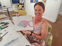 A gregarious little girl took the seat directly across from me and sat thoughtfully staring at her blank paper before finally looking up at me, making eye contact, and asking if I would mind if she drew me. I gave her my blessing, amazed at her confidence. I had Google’d a picture of a parrotfish1 and set about drawing it as Scott worked on his octopus. We both eventually finished and I reluctantly informed the girl that we were leaving. She assured me that it was ok because she knew what I looked like and would be fine and showed me what she currently had before we told her goodbye and headed in search of dinner.