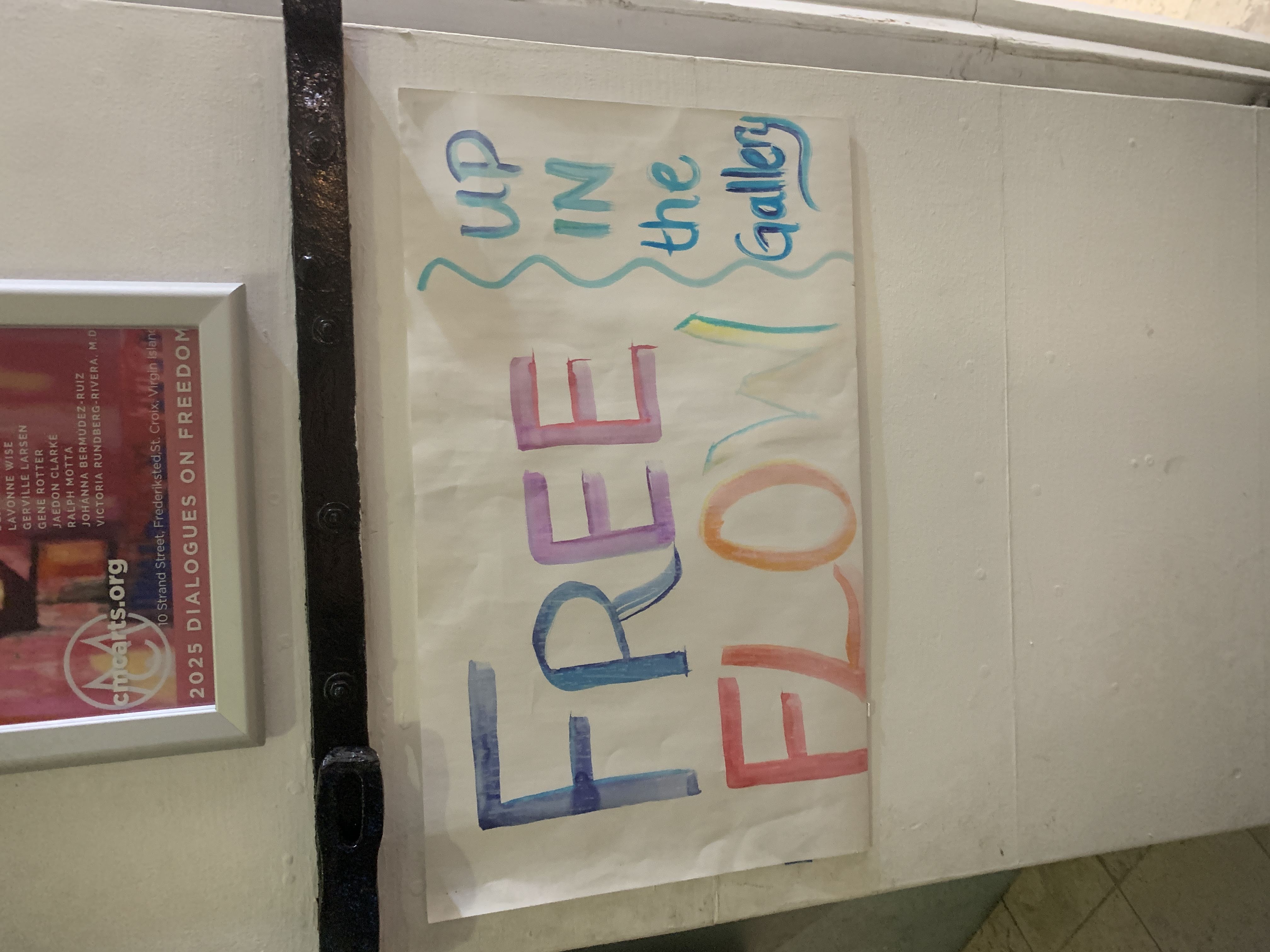 We went into the Caribbean Museum Center for the Arts, a gift shop/art gallery featuring works and pieces from local artists that I’d spied earlier in the week but never got a chance to visit since it had always been closed until this evening. Scott asked the clerk about the festival and she also told him about the “Free Flow” session they were hosting upstairs. Participants were invited to “unleash your inner CREATOR” and try their hand at art. She hadn’t even gotten the words out of her mouth before Scott was bolting up the stairs, leaving me in a cloud of dust. I trailed after him trying to see where he had gone and found him upstairs talking with the volunteer docent.