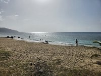 When he was done diving he picked up dinner for us from the famous La Reine Chicken Shack. When it was his turn to order he asked them what their most popular items were and used their suggestions to order that meal for each of us. He stopped at Rainbow Beach on the way back to kill time before it was time to get me from Sprat Hall.