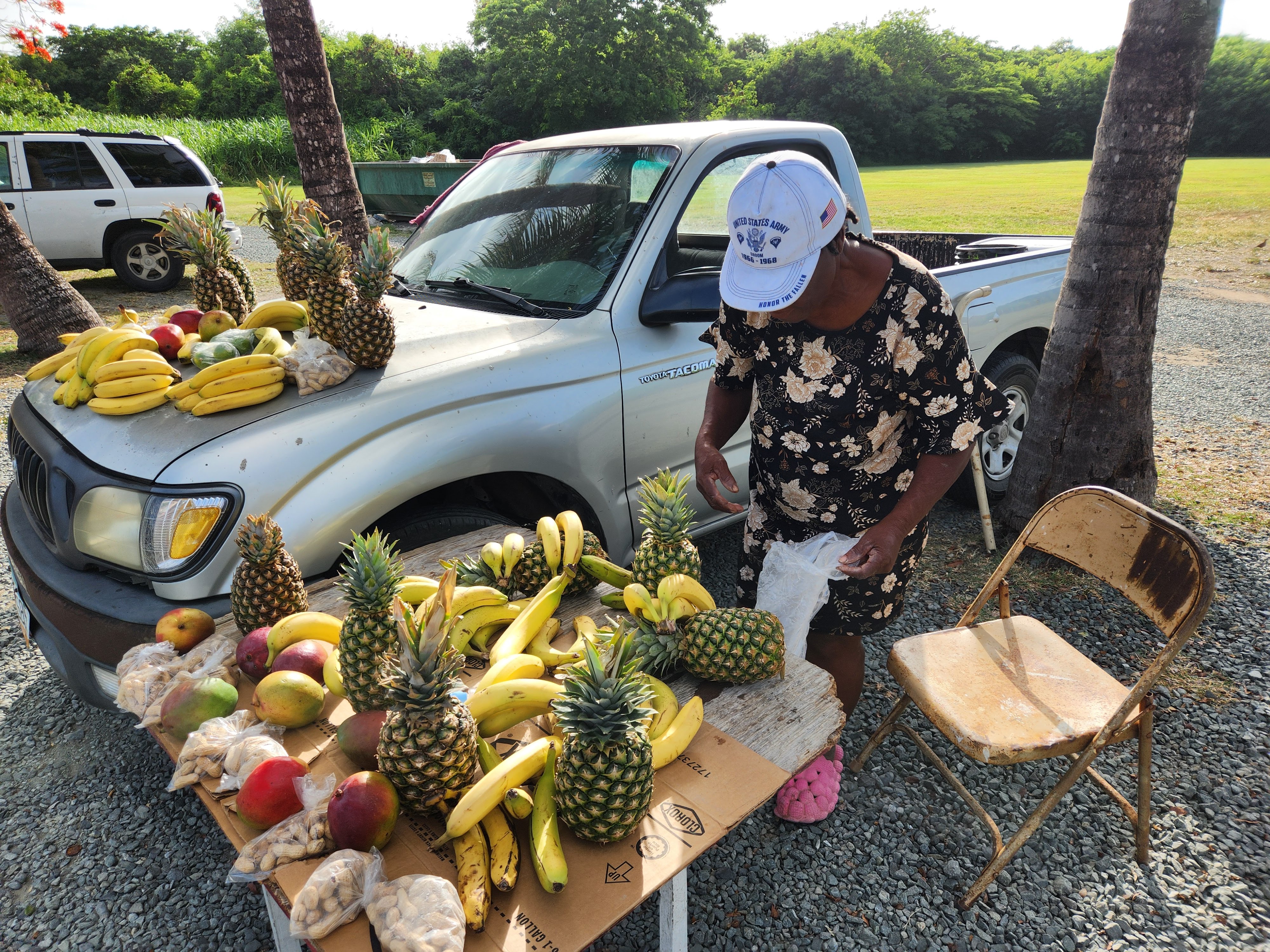 Scott had a quiet morning at his “summer camp” after several action packed days and just lounged around at Hilltop House until lunchtime when he came back to get me. I told him that everyone at camp had been impressed that we got up so early to catch the sunrise at Point Udall, have a relaxing breakfast in Christiansted and make it back to camp in time to teach. On our way back up to Hilltop House he pointed out something funny: a man driving a pickup truck had stopped earlier at a series of epic potholes along our route that we had been diligently avoiding all week, and had emptied out some construction waste directly into the holes that were apparently chips of concrete; a DIY civic improvement. To his credit, it was a vast improvement from its previous state and was a rather resourceful way of disposing of the concrete.