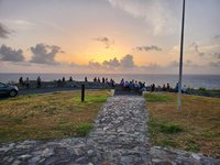 We woke up obscenely early this morning and hit the rough Cruzan roads by 4:30 AM to make our way to Point Udall, the easternmost spot in the United States, to catch the sunrise. It took us every bit of the hour we had allotted, and we arrived just in time to join the crowd of 50 or so other people who had gathered there before us to watch the sun make its way up, emerge above the horizon, and eventually break through the clouds. After we had done this “thing you’re supposed to do in the place you’re supposed to do it” we headed back toward Christiansted in search of breakfast. We were initially puzzled that many of the breakfast spots that had come recommended in Scott’s research weren’t open until we remembered that today was a holiday: it was Juneteenth. We eventually found a breakfast spot in downtown Christiansted that was open and sat outside on their patio and had breakfast before returning back to Fredriksted for me to teach.