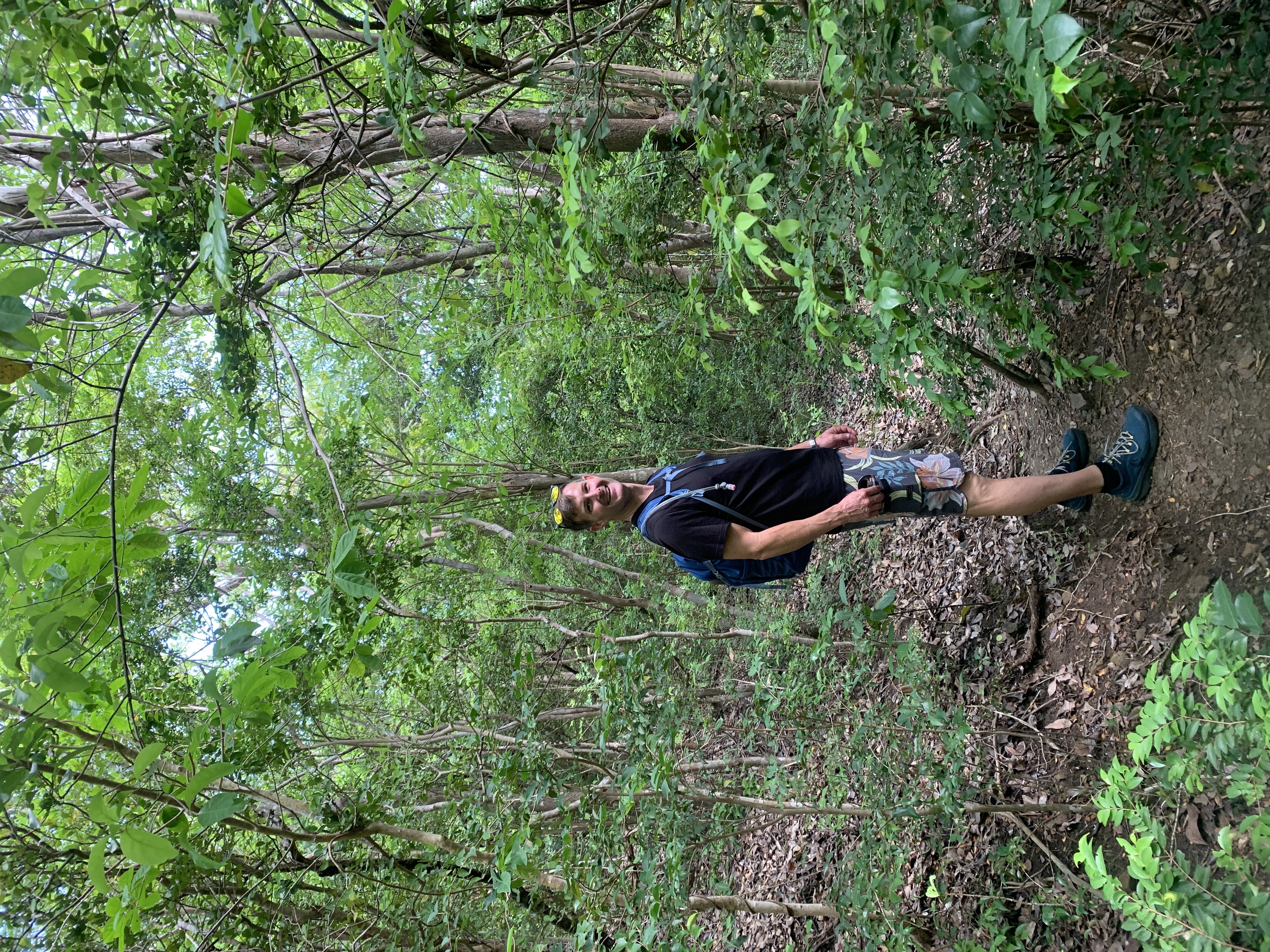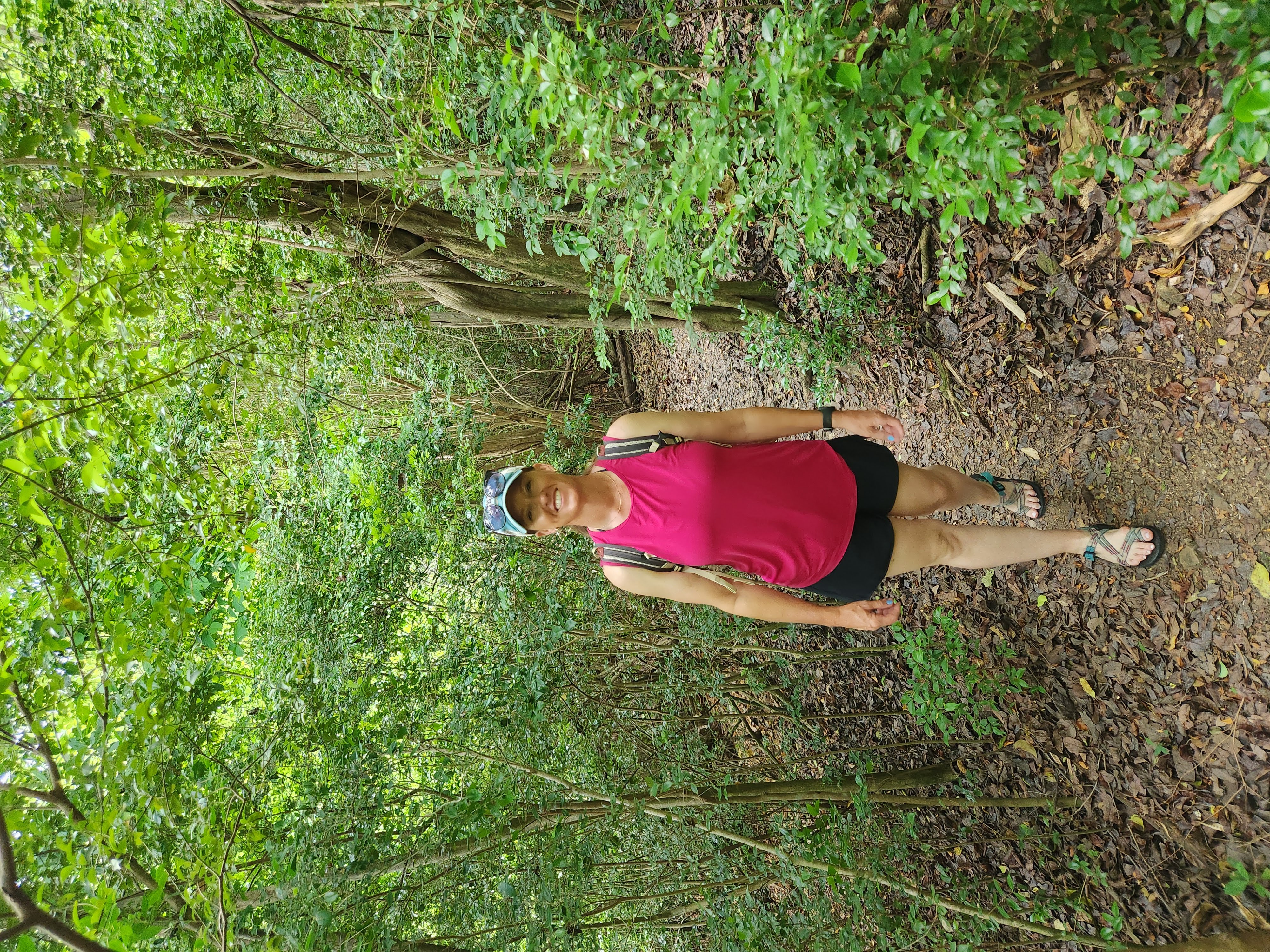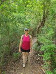 A guard at the gated entrance of the Carambola Beach Resort laid out our parking options when we arrived at the trailhead to the tidal pool hike. None of them were ideal but Scott did a good job nimbly and carefully navigating Miss Bettye’s Escape into the best of the bad options as we drove up a road better suited to a rugged 4x4, following the guard’s instructions to park in the field that “doesn’t look like it is a parking lot but it is.” We got out and began the two mile hike through the rainforest to the pools.