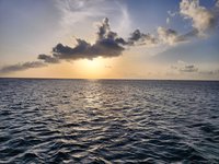 We arrived at the Fredriksted pier early and killed time by sitting in the shade and reading until it was time to board. We were given the standard catamaran trip briefing but also a little history on the 63 foot vessel we would be sailing on. Though she now sports the name The Jolly Mon, the boat has a storied past and used to be named Che Cje. In her previous life she was the fastest catamaran of the 1970’s, setting several transatlantic racing records. She was then purchased by an enterprising businessman drug czar who took advantage of her sleek engineering and speed and used her for drug running in south Florida throughout the Don Johnson/Hawaiian shirt/Miami Vice era until being intercepted by the US government in the 90’s. She was auctioned off and now in her golden years, finds herself giving leisurely sails through the Frederiksted harbor several times a week to tourists, set to the gentle beats of live easy-listening Reggae, never having to look nervously over her shoulder to see if the Coast Guard or DEA are in hot pursuit.
