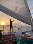 We chatted with the crew some, learning how they came to be in STX and the captain and first mate of the Jolly Mon. I needed to take a trip down to the “head.” The entire time I was down there I was remembering the instructions we had received in our briefing and was reciting them in my head chant-like as a reminder as well as seeing them reiterated artistically in needlepoint on a sign directly across from me: “If it wasn’t in your body, it doesn’t belong in our potty.” I had the best intentions of putting the toilet paper in the trash can next to the loo, I really did, and then just out of sheer muscle memory and habit, I promptly dropped it into the bowl. Instantly discovering the error of my ways, I panicked and in a split second decision, decided that maybe the same 3-second rule that applies to dropped food on the floor also applies to dropped T.P. into the water and snatched the just dropped wad of T.P. out of the potty. It must have been marine T.P. because it was already starting to disintegrate, but I gamely fisted what I could and threw it away in the correct spot, assuring myself that my bravery saved the ship from certain doom. And then I spent the next five minutes washing my hands.