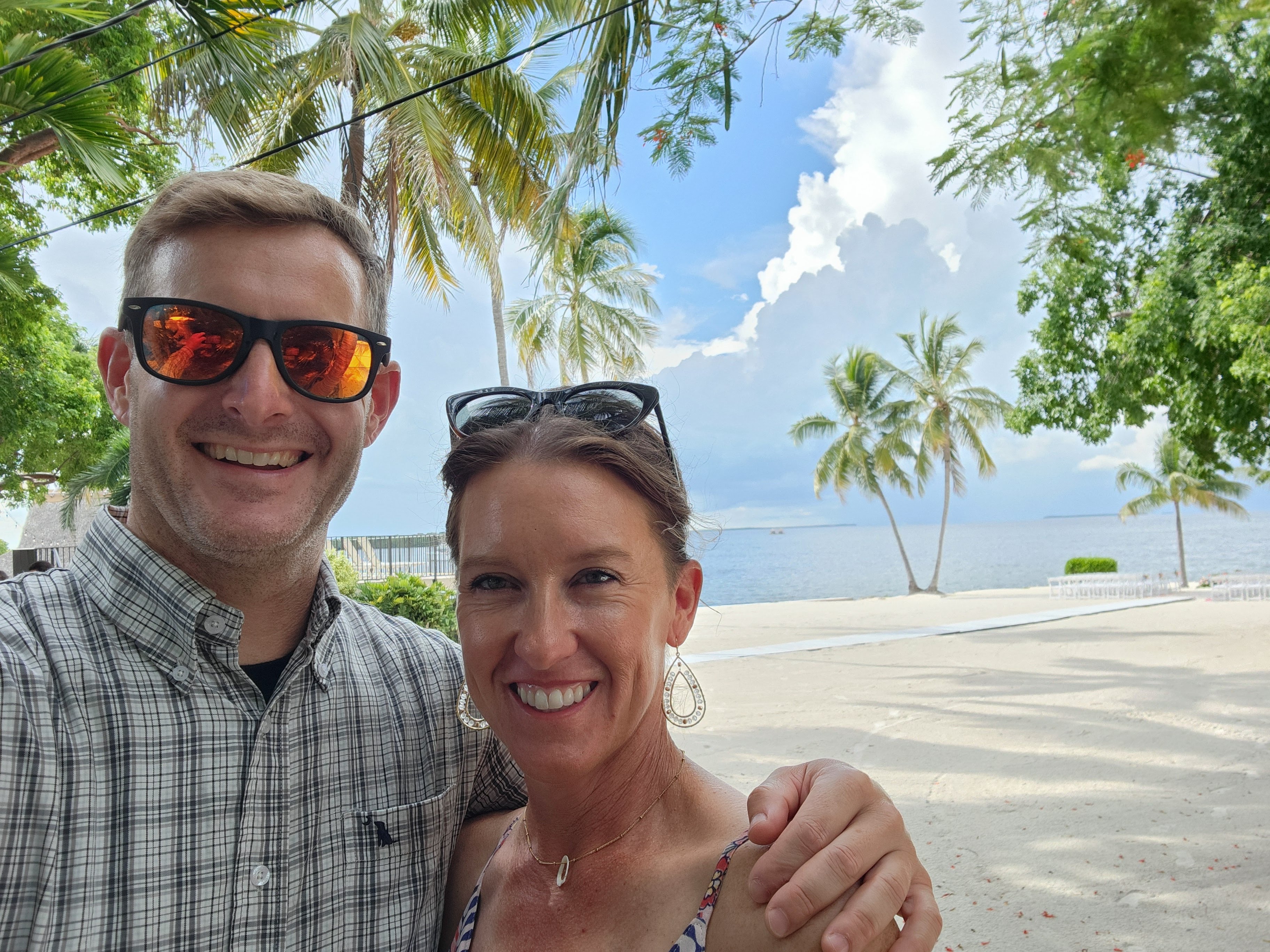 We arrived fairly early to the wedding venue, The Key Largo Lighthouse Beach, so we had some time to walk around and admire the property and its waterfront views. They had picked the most idyllic spot to get married. Holly was a beautiful bride and her brother Gus served as the officiant and was his typical goofy self which was perfect. I cried happy tears as she and Bradley said their vows. Holly’s brother-in-law was in charge of FaceTiming Holly’s father who unfortunately was not able to travel to the wedding due to an emergency abdominal surgery a few days prior. They kept the ceremony short and sweet and then we were sent to the pre-reception cocktail hour that featured a tiki-hut bar right on the water.