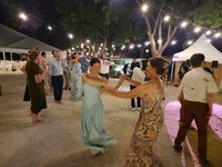 After cake and toasts the crowd moved out to the sand dancefloor and we were blown away by the dance moves of the youngest Torsilieri children Willow and especially Remy, who danced their little hearts out for hours. It was Ben, of The Last Bison fame, that stole the show when he broke out The Worm- he gave it his all and we were all suitably impressed (although he paid for it the next day, visibly stiff and limping his way into breakfast). Scott was relieved that there were no slow songs so he wasn’t forced to dance with me. We called it a night around 10 PM and headed back to our boat.