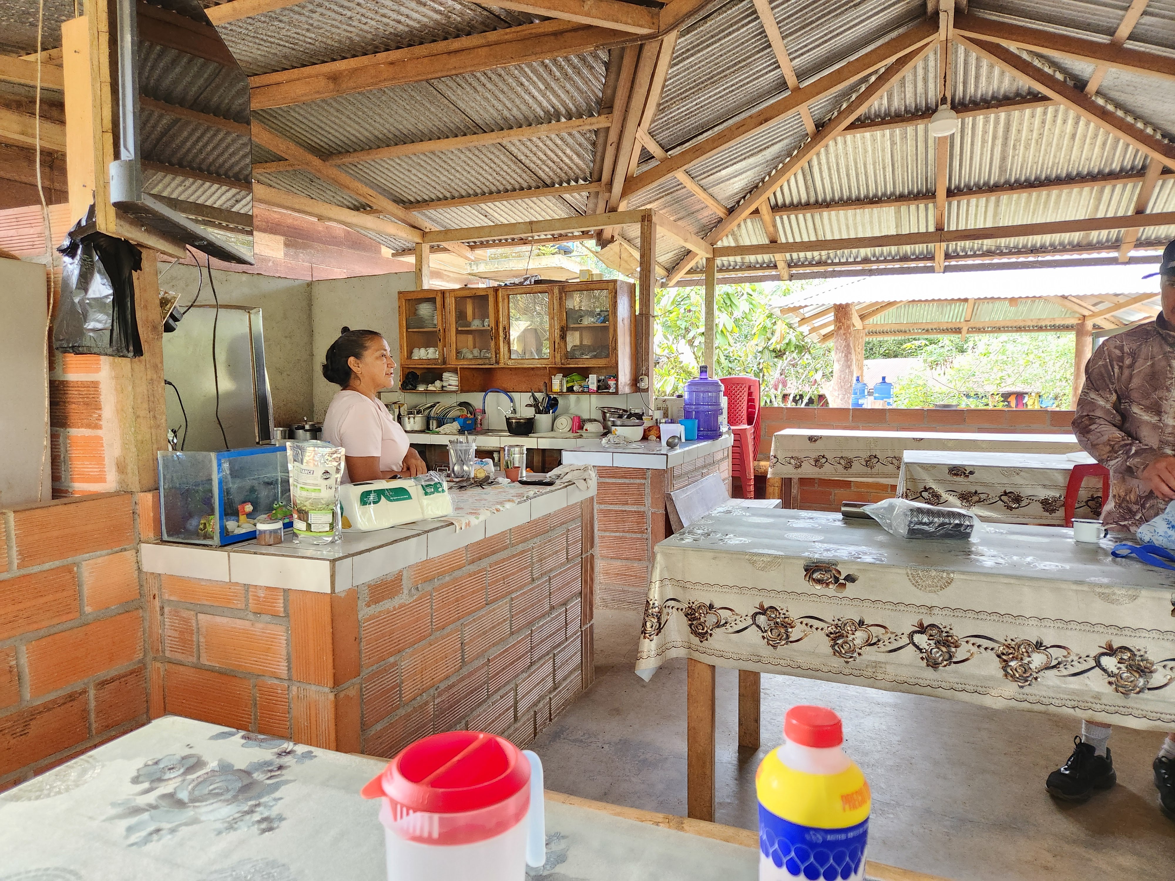 Once the hot drink was ready we sat down at a table in the open-air kitchen and the orchard owner’s wife brought over what was essentially Ecuadorian eggs-benedict; eggs sunny side up served over homemade plantain tortillas. It was divine.