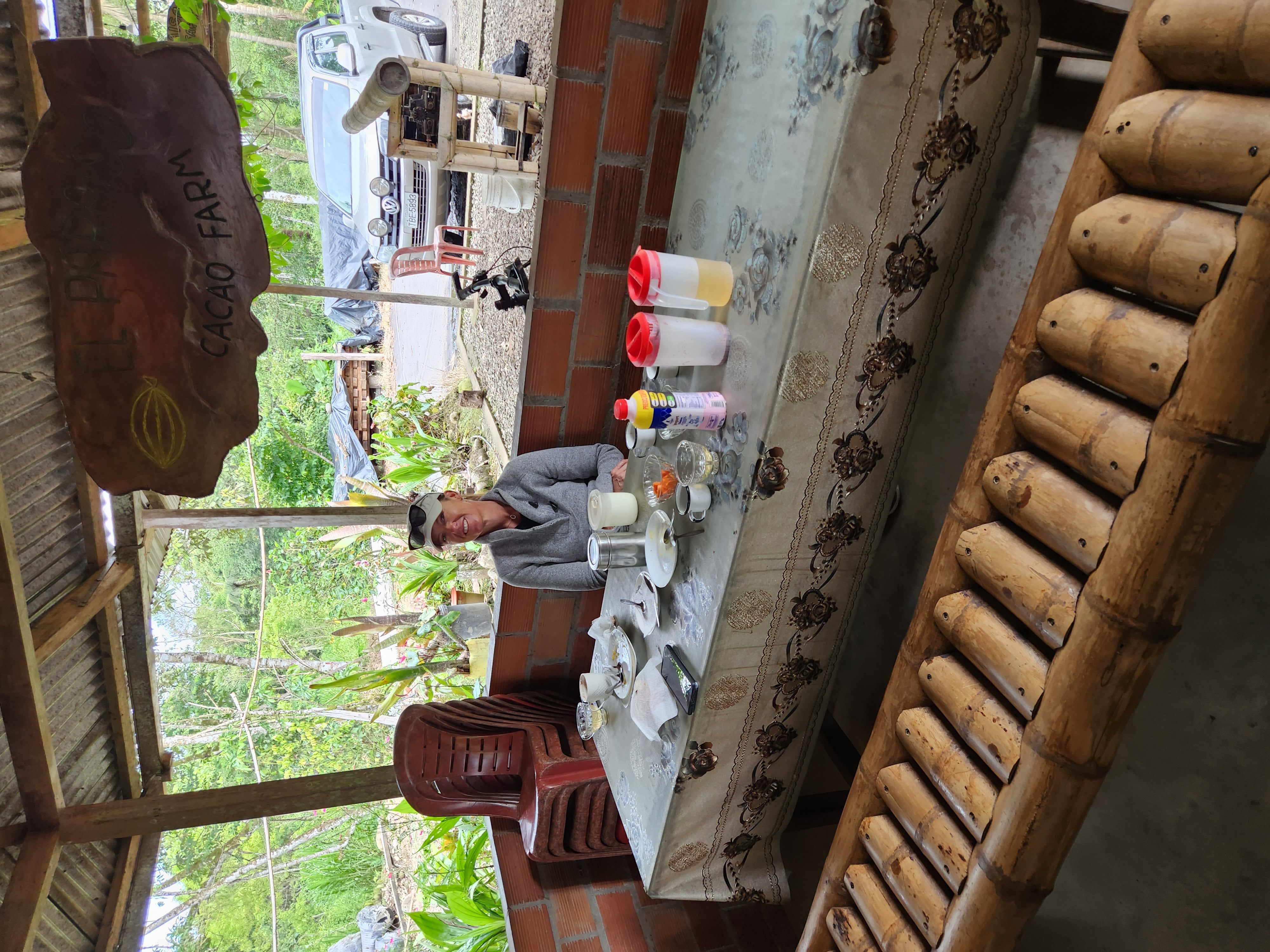 We hung out on the bungalow porch and took in the views. Our bungalow was perched on the edge of the Puyo river which was shrouded in a dramatic layer of fog this morning. As the sun rose higher, the fog burned off and we were treated to stunning views of the riverbanks around us. We rendezvoused with Carlos at 8 AM and headed off to the local cacao farm, El Paraiso Cacao Farm, to see how chocolate is produced.