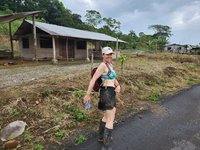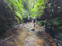It had started to rain at this point and Carlos wanted us to get out of the canyon as quickly as possible because the water can rise fast with rain upstream. So we hustled out, grabbed our clothes and started the hike back out. We took a different route that was mostly downhill, and while it required less machete action, was even muddier than the hike in. He gave me a walking stick which was helpful but I still managed to have one wipeout which covered my whole backside with mud.