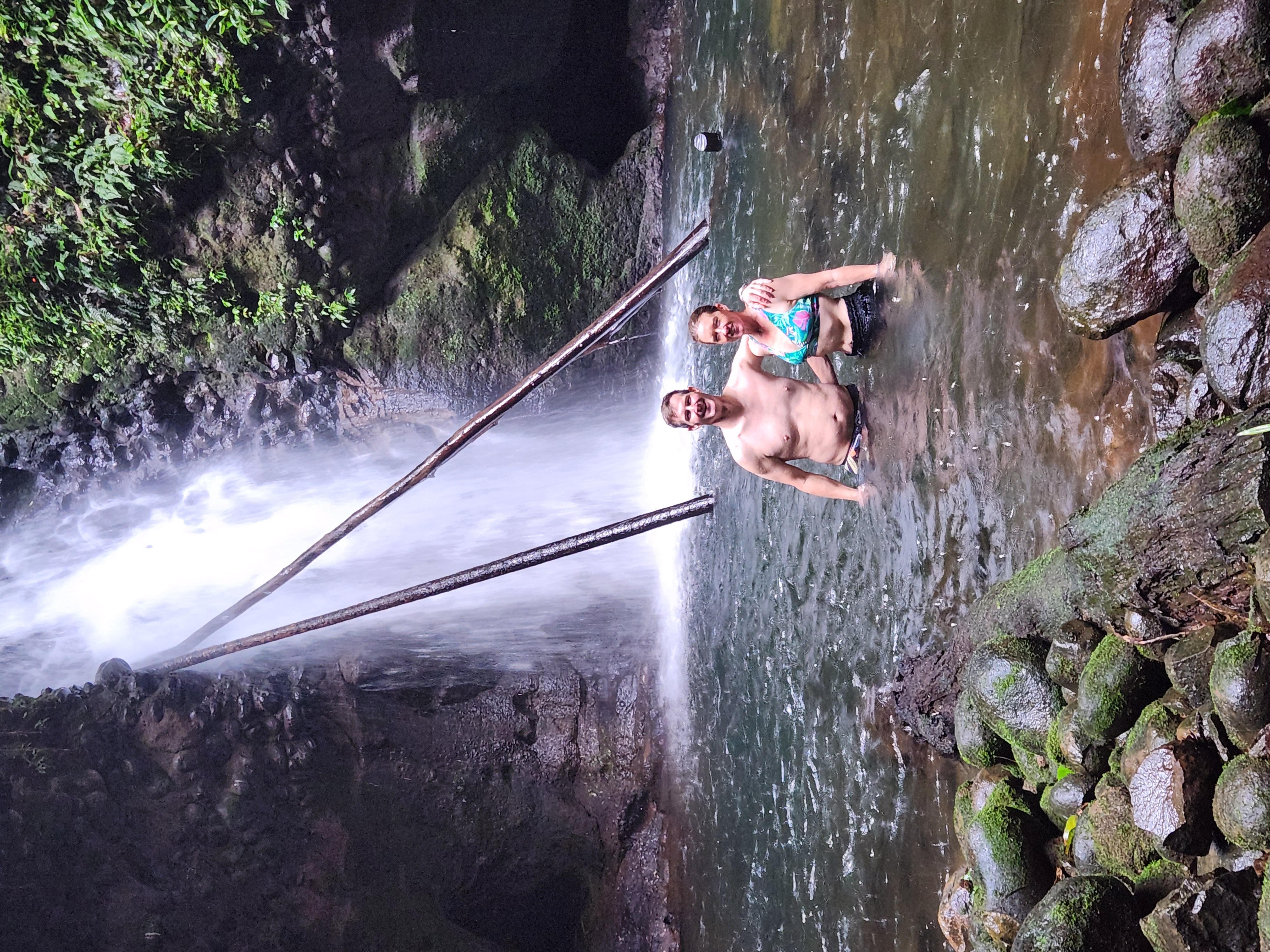 Well, it turns out Carlos had been calling it a “hidden” waterfall, not a “heated” waterfall, but with his accent I kept hearing “heated.” So that’s how I came to be pummeled by a regular ol’ waterfall because otherwise I probably would have hung back, not wanting to get cold. (Insert lol emoji here!) When I told Scott he really did laugh out loud and asked me how the heck a waterfall would be heated. I shrugged and said “I don’t know, I guess I thought it was warm because of all the thermal springs in the area.”