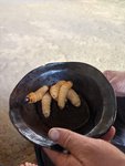 Carlos walked us over to a fire on a stove that was being tended by the orchard owner. The orchard owner handed Scott a wooden spoon and instructed him to stir the cacao beans around the pan. Once roasted, they were removed from the heat, and we were then shown how to crack them and remove their outer covering and to save the interior portion. At this point they closely resembled, as well as smelled like, coffee beans. At this stage these were considered “cacao nibs.” We were told to sample them and I already knew I would not be a fan since I am not a huge chocolate lover and certainly do not appreciate dark or bitter chocolate.