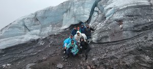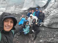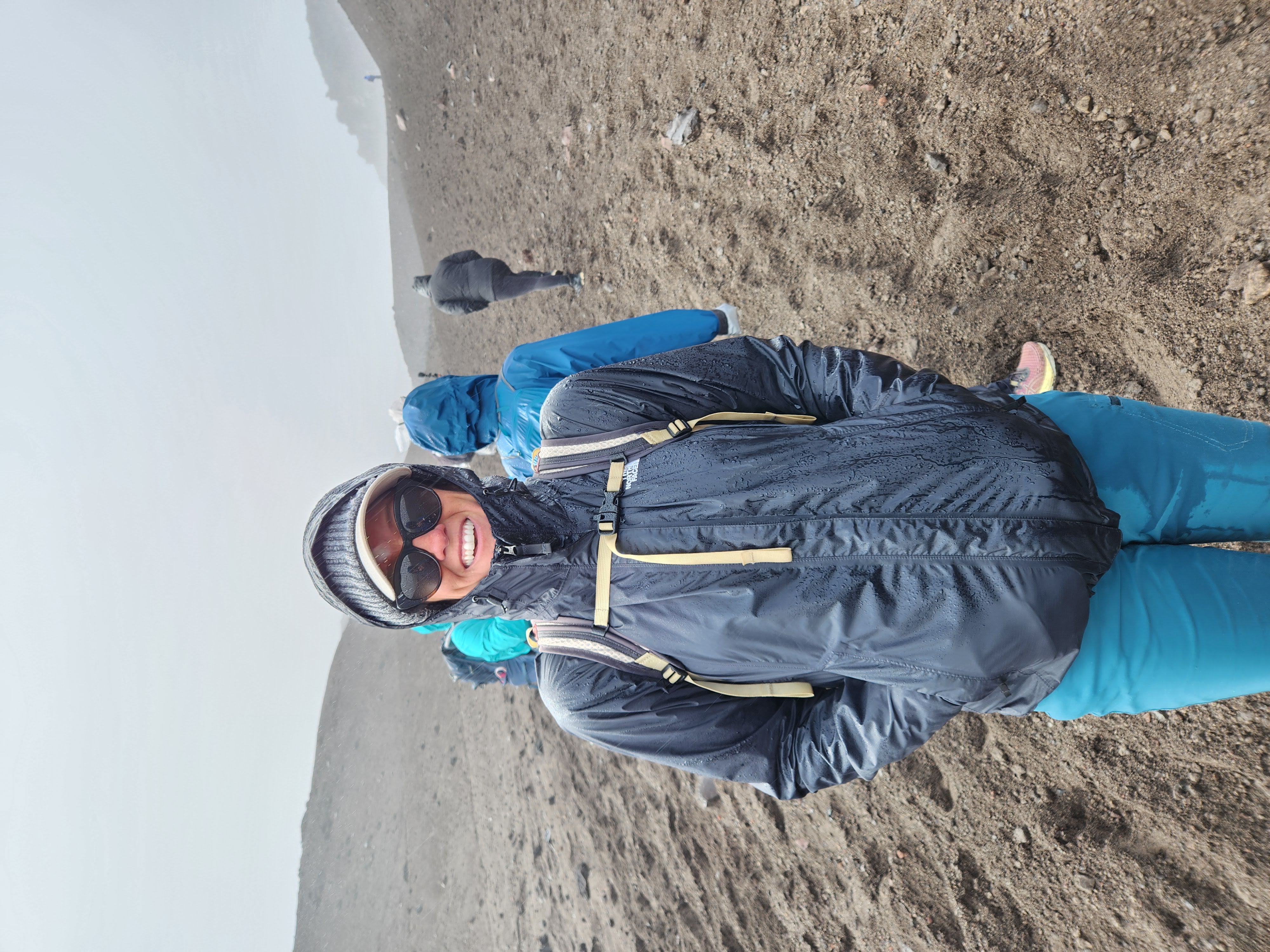 The base camp to glacier leg was pretty intense because the footing changed. It was more hard- packed but with loose rocks over top that caused your feet to slide out unexpectedly from underneath you. There also was a little bit of rock scrambling that we had to do. I also learned something. I knew that mountain climbers strike out early on their hikes, and I never really thought about why that was until I got to experience it firsthand on this hike. It is because the sun’s light causes glacier melt and causes little streams and creeks to appear so the going gets sloppier and potentially more dangerous as the day goes on. (It also makes snow bridges more likely to collapse as the day gets warmer, although that didn’t apply to us.)