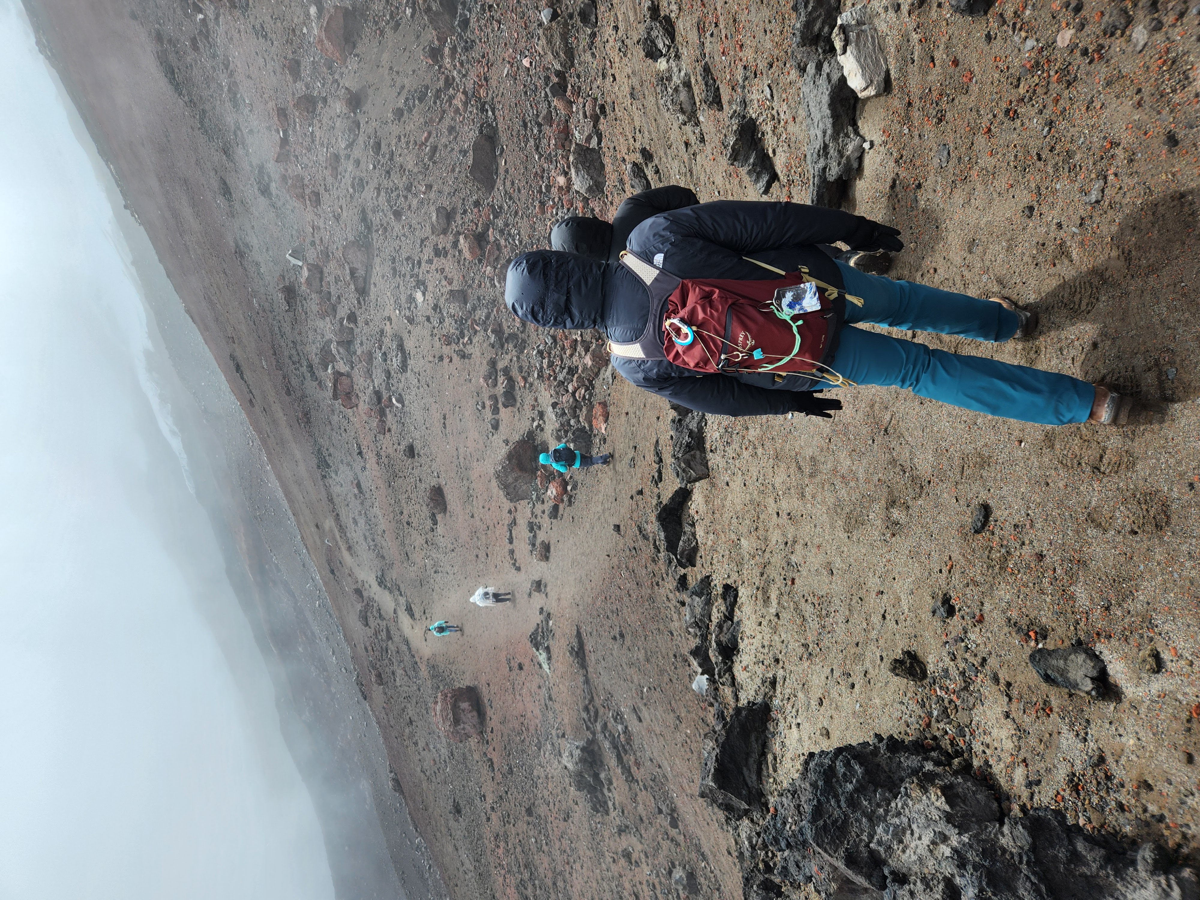 First off, you are going to want to buy a StairMaster. Next, you are going to want to somehow attach sandboxes to the StairMaster steps and fill them with deep beach sand. I don’t know how you are going to do that, but you’ll figure it out. This way you will be prepared to not only climb up the mountain, but also through the loose and deep volcanic scree that comprises the majority of the hike.